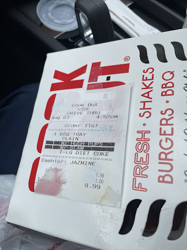Read moreHad a taste for hotdogs so my husband and I stopped at Cookout in Suffolk Va on Sun Jan 19th 2025. Well we should have made a better choice. 1st of all we sat in the drive thru for 15 minutes or more. I ordered 2 hotdog tray cookout style and he ordered 2 hotdog tray with chili and cheese. We realized we didn't get any straws or napkins so we pulled into a park to go in. Open the tray and the entire order was wrong. We had 3 hotdogs total and they were all chili cheese dogs, one of my side orders were wrong and the other one was missing. My husband goes inside comes back and says the female server said she made the hotdogs herself and she know she gave them to him, as if we were trying to steal a hot dog. He comes back to the car with the correct side orders but the same chili cheese hotdog and she refused to give him the missing hotdog. I returned with the entire order and she's looking in the trays, with an attitude trying to find the hotdogs she supposedly gave me. She did correct my order. I've been to this location several times and I've never had a bad experience but this was the worst service and the worst tasting food from a cookout I've ever received. While there I also witnessed another worker drop a cup on the floor, pick it up and returned it back to the shelf with the clean cups. This establishment just needs...