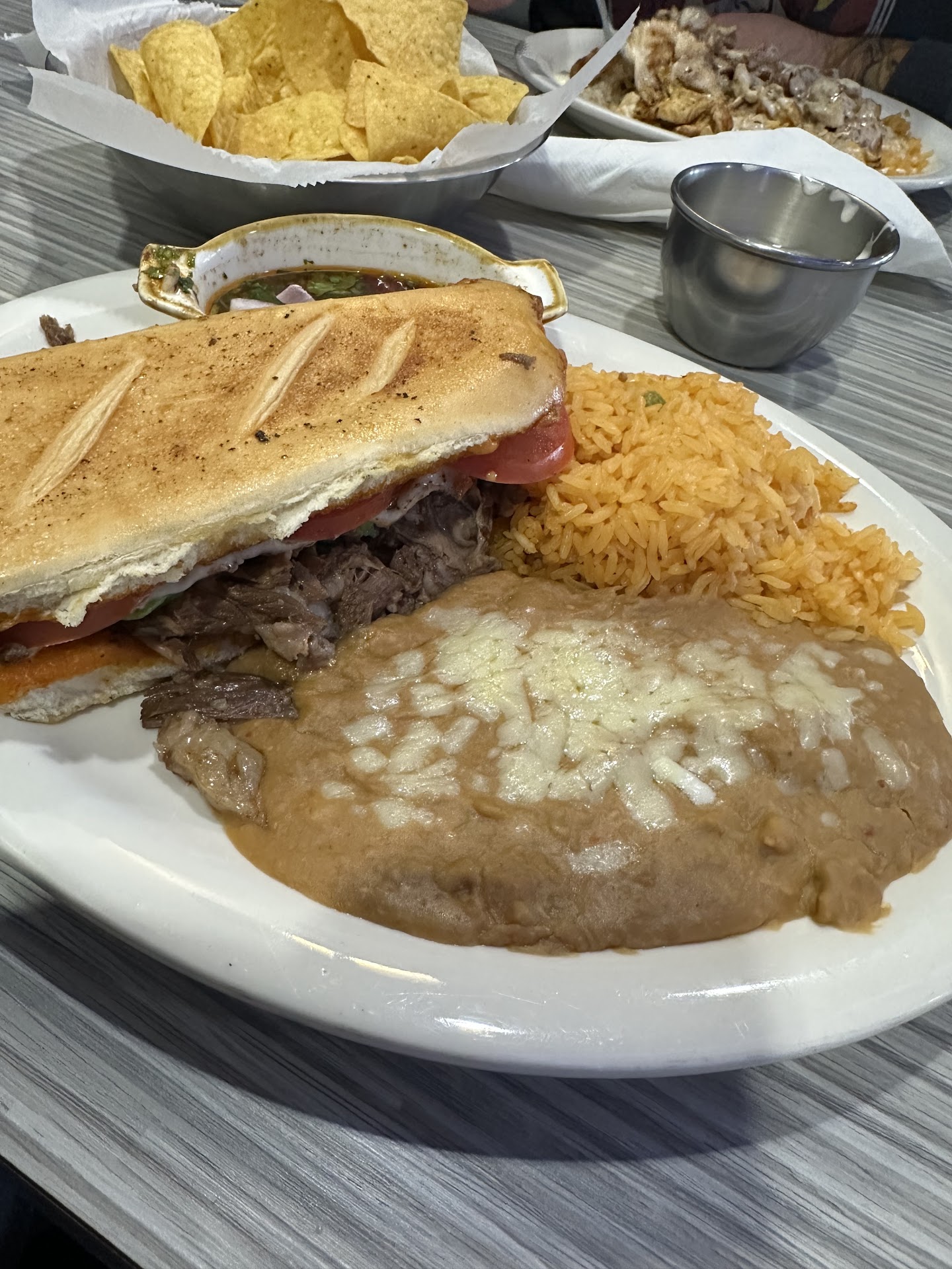Read moreIf you don't have money for a sizable tip, don't go to this restaurant, they will harass you and I'll explain this at the end. The service was not that great, our waiter had to be called twice by another waiter. We were there for about 45 min total, and he only came back once to our table to refill our drinks. The food is Americanized mexican food, not authentic. Most of the soft tacos and burritos have what we called "taco bell meat",instead of actual chopped beef, they put white cheese on top of everything including rice. The female bathrooms smelled like urine and there was water near and around the toilets, both of them. The only two good things about the restaurant what their Horchata, and the easy access to the restaurant from the main road, hence the one star. So, back to the tip, like I said, the food and the service was not that great. So my family left a 10% tip for the meal. My mother left hers on the table, and everyone else left it in their credit card. So, we're leaving the venue, and I'm in my car with my kids.... And here comes the waiter and stops at my car window to say " was the service so bad that you only left $5 dollars?, wow, really? ( my mom was only giving a tip for herself and my 2 year old nephew). So I said "Everyone else left a tip". He said "no, there are only $5 dollars, that's it, next time I'll just add the gratuity to your bill" At this point I'm flabbergasted that he had the guts to come outside and talk to me about this, TRYING to embarrass me. So I tell him "everyone else left a tip on their credit card, not on the table, and now because of your attitude, you just earned a very negative review on the restaurant". The waiter came outside before asking to see the tips on the cards, he just saw the cash and was mad, this shows the character of the restaurant...