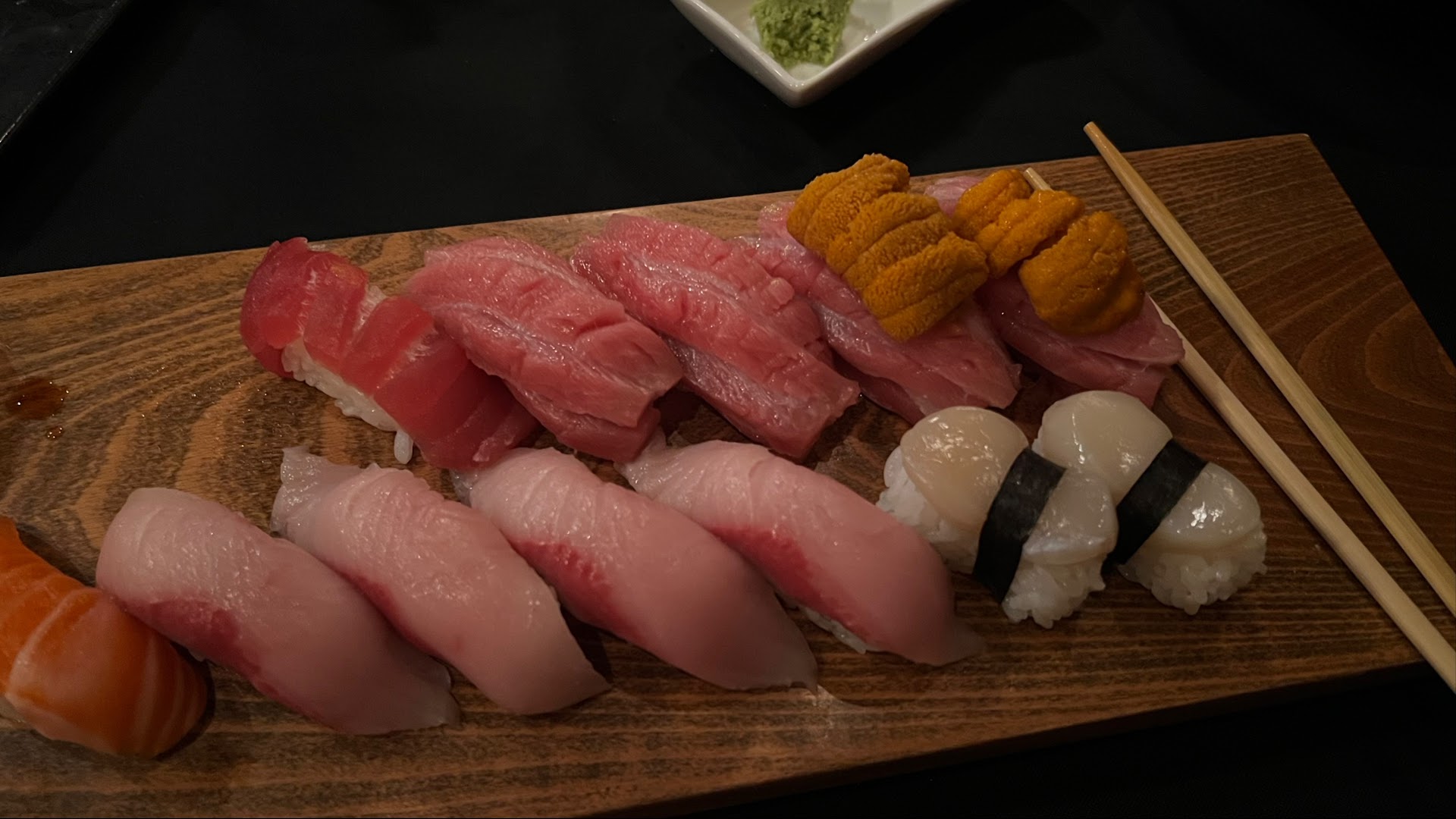 The sushi chef is humble about his talent, but he may be one of the best sushi chefs the world has ever seen. He meticulously searches for and hand picks only the best fish and ingredients, spends countless hours before the restaurant opens prepping, and has an attention to detail that is unmatched. You can taste this in his sushi and other dishes. Also, this man can cut green onions impressively thin. I was very impressed by this. No one wants to take a bite of a chunk of green onion.