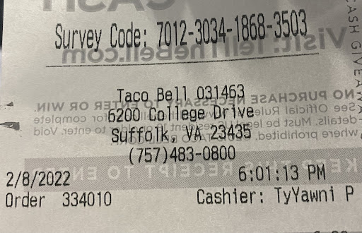 Read moreI’ve never left a review anywhere I have been BUT this tacobell…. Absolutely ridiculous. I’m a tacobell lover and this is the only one near my house but I hate to say…. I’m done with tacobell in the area. I’ve been to this one a few times and everytime something on the order isn’t there and the order is kind of messed up. I was always like “they are busy it’s fine no big deal” today though…. My family and I went up to this one. We put our order in in my phone like 15 minutes before arriving so we could go in and just eat and there’s 4 people instead of waiting. We get there. It’s not ready. I’m not mad at this point. I understand. We get our order… my kids bean tacos have 1/4 of beans across the bottom and I had to smear it across to the other side to make a floor for the taco to roll. Same thing with the other. My husband and I paid for avocado sauce. They are out of it. Also, my husband got a crunchy taco. It was in crumbles and broken all the way through. I ordered a bean burrito with extra red sauce. (Paid for it ) it was just straight beans. No sauce or onions. Just beans rolled up to a burrito size. The kids nachos only came with cheese. No chips. There was a cheese quesadilla I paid 5$ for and it legitimately was burnt with no cheese on it. I’m not one to complain but I asked my husband to re order it at the register and I ended up having to pull the quesadilla apart to Cabot it was like a giant burnt chip with no cheese and I paid 5$ for it so I’d like one made correctly. ON TOP OF OUR ORDER 3 people behind me came in with a complaint at the same time as me. Nobody at this location can make a taco. Poor...