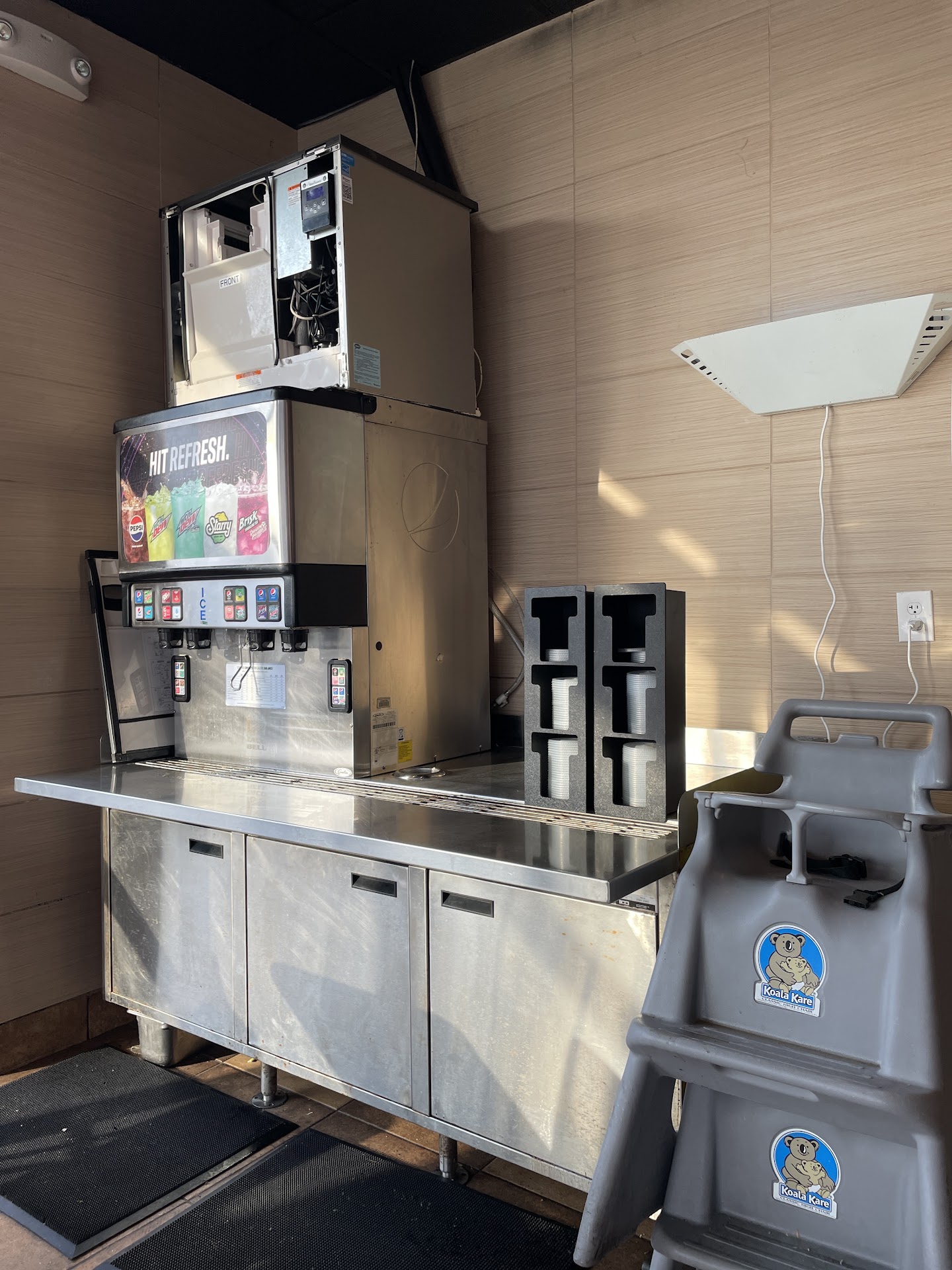 After I received my food, I almost fell going to the drink machine. There was a wet floor sign, but it wasn't visible from the counter. It also looks like something is leaking from the machine.