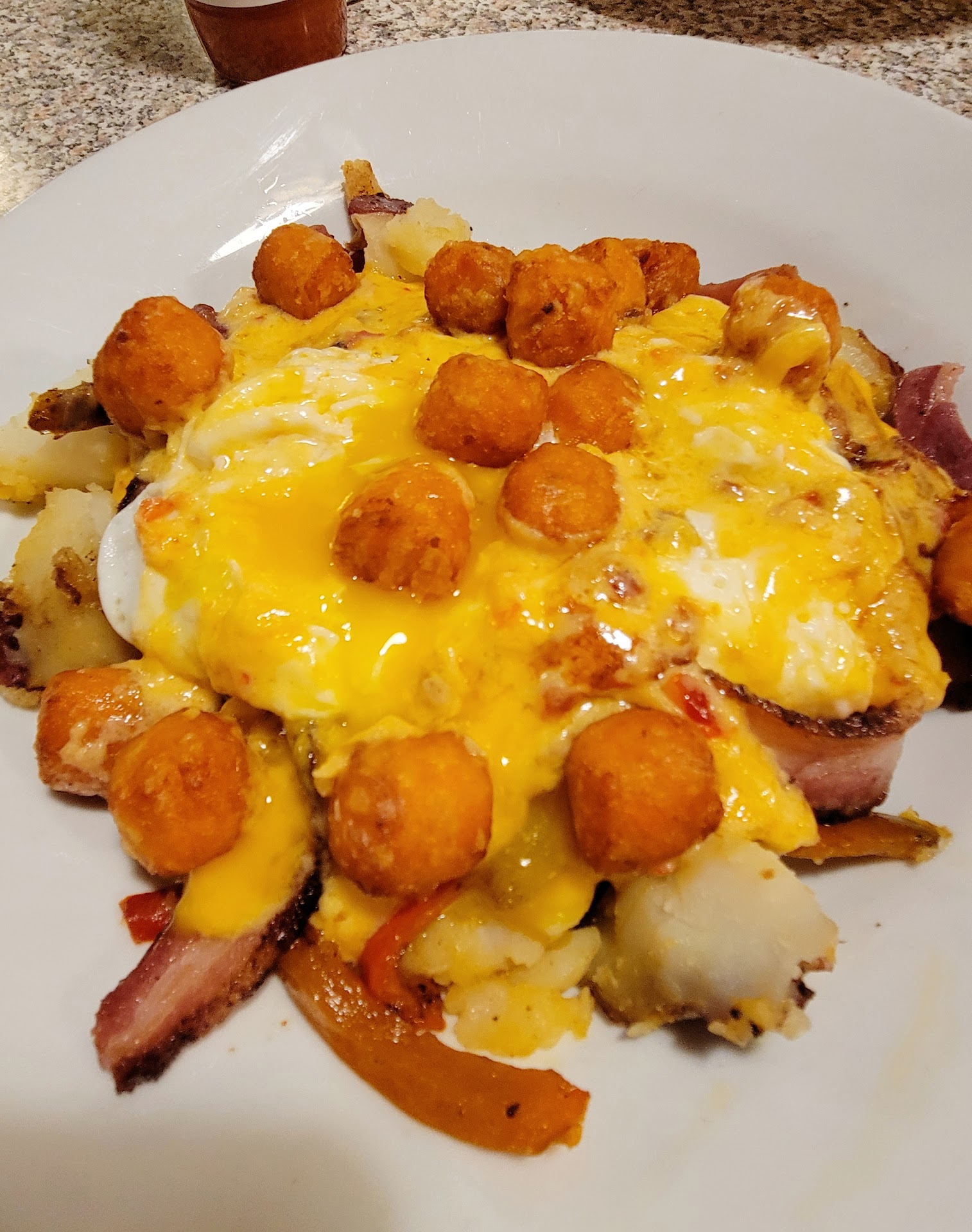 Read moreGoogle reviews had people raving. And maybe it is amazing when it's not the holidays. We found this as a suggestion on Google maps while coming through town. There is zero signage outside to indicate where to go. It took finding a review and asking a gentleman outside if we were in the right vicinity. Coming inside, we were greeted and asked if we had a reservation. Must be great food to need a reservation! We got here 10:55, we were served at noon. Out of our three orders, the Meatzilla was the one to rave about. The Crabacado filled the dish and left little to the imagination. They definitely use extra breading to sweeten the crab cake that is folded into the omelette.The grits that came with the dish, definitely prepared way before the omelette, so there was a thick coat of setting when the food arrived. I ordered the Upstream Eggs Benedict. Hollandaise sauce was light and creamy, the salmon was a little undercooked to my preference and I chose to skip the red onion and capers. In our experience, The Plaid Turnip has a wonderful presentational setup. The establishment smells amazing and wonderful when you enter, but you are going to get full on smells alone waiting for your food. I dont blame this on the business, but rather DoorDash and other pickup deliveries. When we asked on a time check for our food, they had been slammed with online orders and had to prioritize them. In all honesty, not a bad experience and will visit again during slow season when we come...