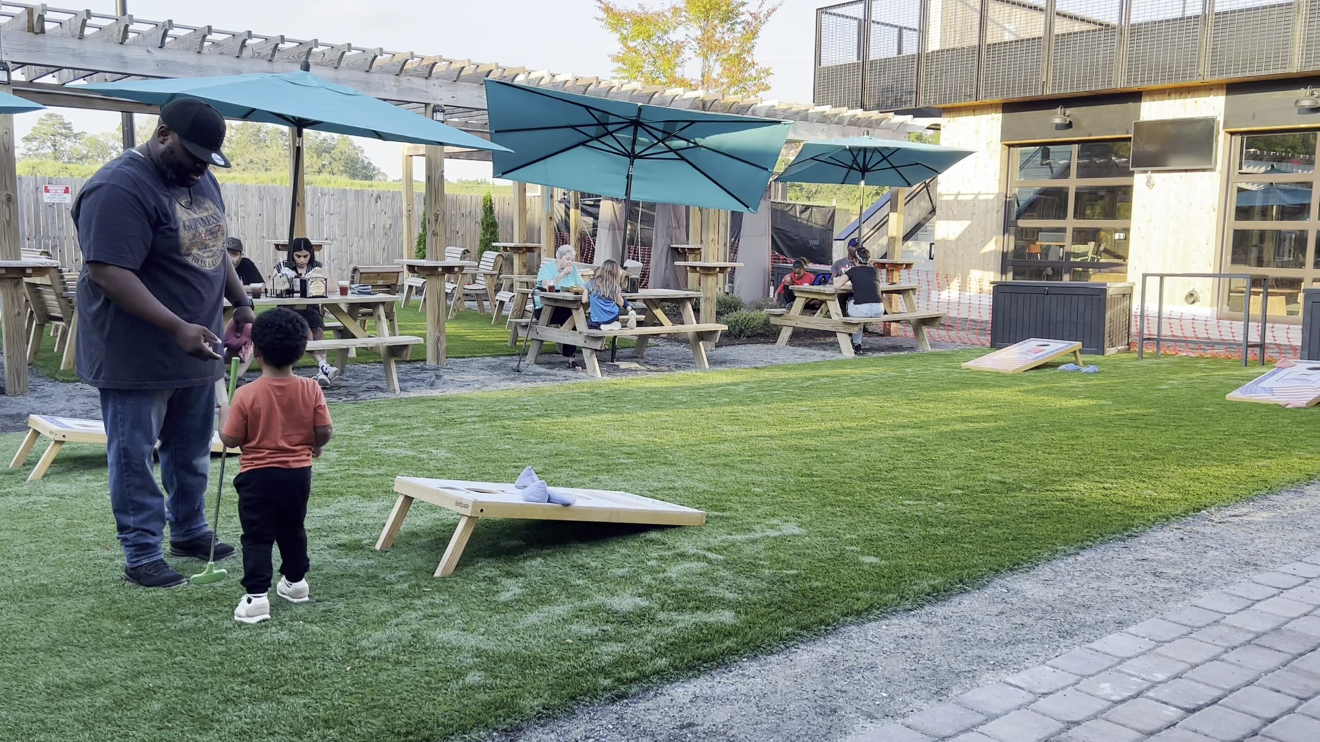 The kids played and had fun. We had fun. The men played corn hole for a bit & being that it wasn’t crowded, the kids joined in. Everyone had a nice time & our waiter was SO awesome & friendly. I genuinely wish that I remembered his name to give him a shout out. (White guy, probably in his 20s, smaller-size build, maybe blondish/light brown hair?)