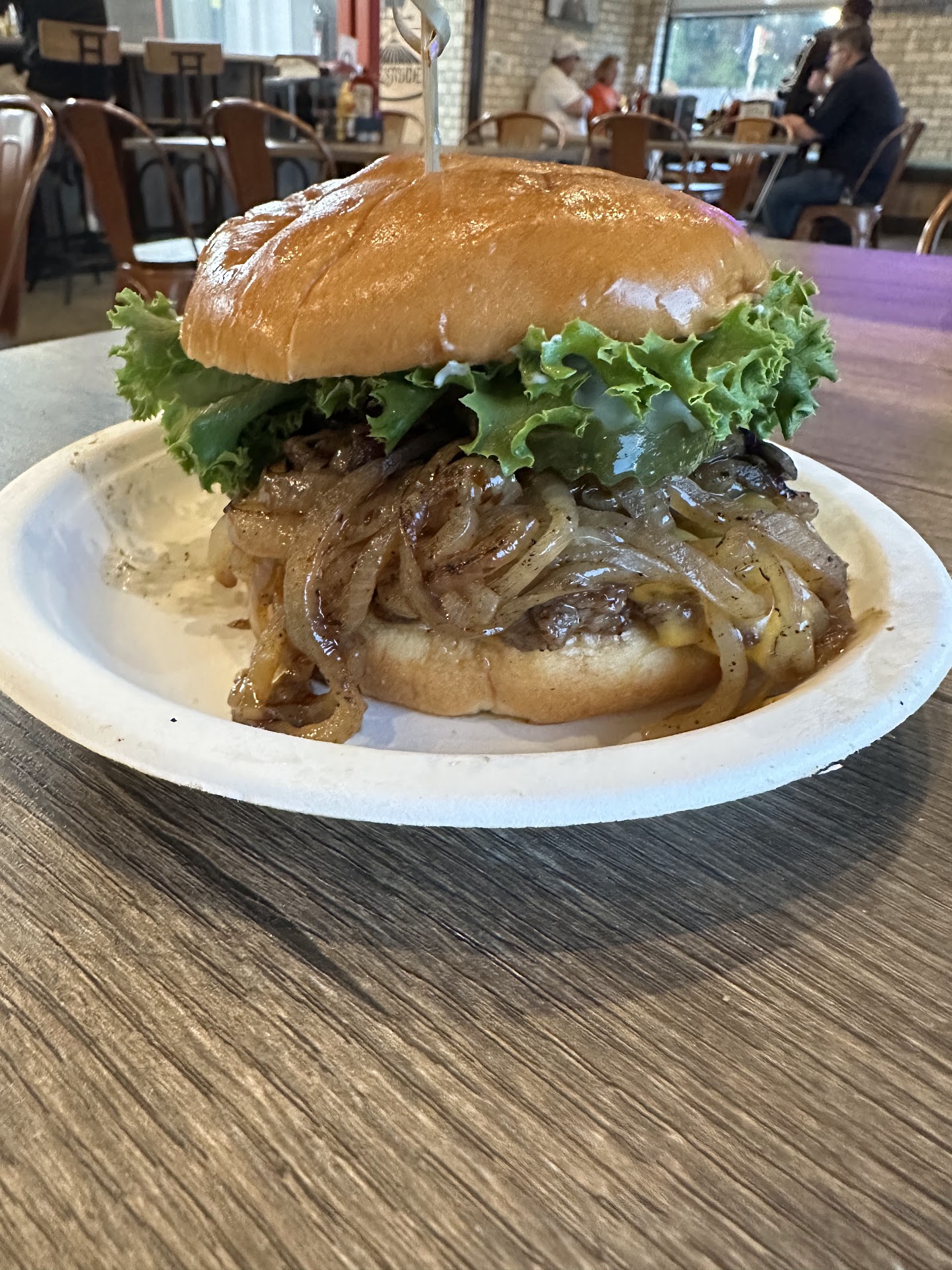 Read moreOrdered burgers, fries & onion rings. Burgers were fair. Meat on my burger was undercooked (more steamed than grilled, pink & mushy inside) and not particularly flavorful. My husband’s burger was more on the well done side, but still lacking in flavor. Both were smaller than expected for the price point. Toppings requested (basic lettuce, tomato, onion & pickles) were generous, fresh and tasty, but not worth paying extra for. Bun was soft and fresh, but average. Would have much preferred it warm, buttered & crisped on the grill. Fries were hot, fresh & pretty tasty. I’d guess frozen instead of fresh cut, but that’s fine. A bit overpriced for helping size though. Onion rings were also hot & tasty, but not worth the $6 charge, IMO. Would have been nice to have a combo option. - Overall the food was decent, but we really expected much more at this price point. There are much better burgers in the area for less money. (The Farmers Table, for one…) - All that said, our server was nice and attentive, food was pretty quick and the atmosphere was pleasant. Were able to watch our fave FB team play while we ate. Think it will be a fun place to eat & hang with friends once the outside terrace area (with tvs at each table … & corn hole!) is opened up. - In summary, our first visit was fair. Not terrible, but not great. A tad too costly for what we got. We will visit again to try the wings and other menu items. Hoping the place steps it up a notch as it gains experience. — and it might be wise they scout out their nearby competitors? The place has great potential and we’d really like to see it succeed. — (Edit; After looking at other reviewers pics, it seems they received grilled buns and larger potions than we did. Our experience was not the same. Wish I had remembered to take pics. Maybe just an off day? Will def give them another shot to find out. Really want this place...