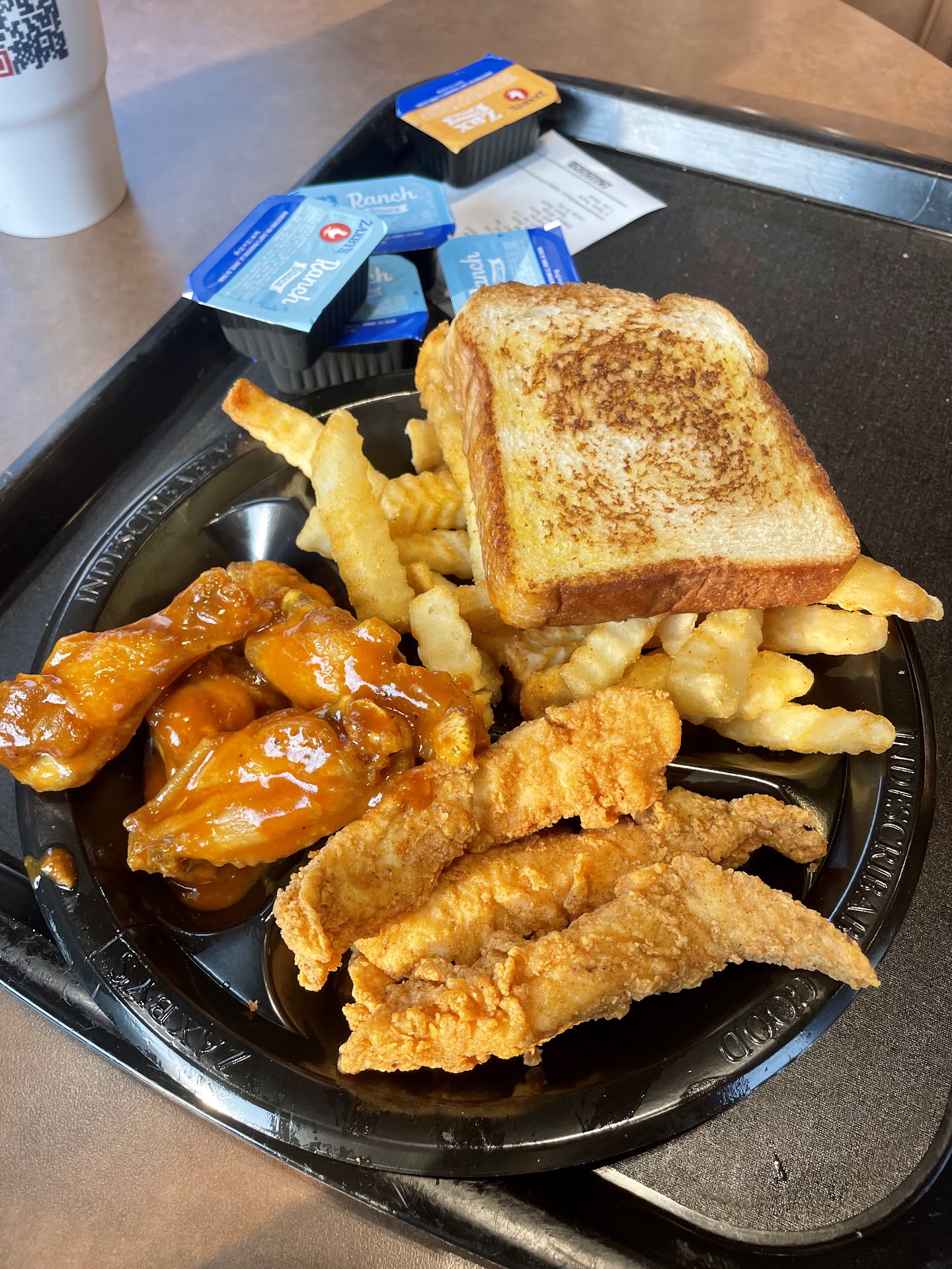 I MISS my Zaxby's. Years ago, this franchise was on point. Even though it's always been a bit slow on the orders and making food. I'm good w/ that as long as it's fresh. So, ever since Raising Cain's came to town, I have yet to go back to my fav chicken place, until tonite. Please know this is coming from person that would fly into Atlanta and get an uber to take me to zaxbys in between my connecting flights. It truly was my favorite. It was always fresh and I love the dip sauce. But, the location in Hampton, VA has such horrible service, no doubt it's easy for Raising Cains to kill them on sales. Not having been to my Zaxbys since about 2020, I tried tonite but in a different location, in suffolk, VA off college drive. I thought perhaps they hired a quality control person to pick up the pace on the business. Upon entering the building, i wanted blow my nose so I went to the bathroom. After waiting about 5 mins for my guy to come out of the toilet stall, it was apparent since he was an employee w/ the work attire, he was simply hanging out on the phone in the toilet stall. He apologized to me once he noticed I was waiting to get to the toilet. SO, I ordered food, and long story short, the fries(which I asked for no salt) came out over cooked, you know when the grease has burned through the fry. I ordered a 4 piece tender plate, but I received 3 semi dry tenders and one half of a completely dry tender. it was horrible. All this to say; I want to spend my money here, but this franchise makes it hard to support. So, I guess I'm FORCED to drive to Raising Cains' because the food is 100% always fresh there. I've yet to have any issues w/ my food ever since I started going. PLEASE, zaxbys, can you clean up your act.... and your other locations, the one on Portsmouth BLVD is so dirty, the drive through needs a pressure wash from the dirt on the building. If outside is dirty, I wonder what the kitchen could look like. All this with love...