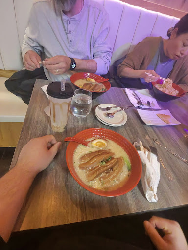 The milk tea is the star of the show here. Iāve been to a lot of places that offer it, and this was one of the best brown sugar milk teas Iāve ever had. There are ample tapioca pearls if you add that as a topping. The lid for the cup was unique and a bit odd as they appear to use one that is meant for hot coffee, as opposed to the lids that are used at most places which is essentially a thin piece of plastic wrap; I like it, itās resealable in case youāre looking to travel with it. There are large TVs inside playing K-pop music videos š itās a nice touch. The eggs in the ramen are marinated and soft boiled to perfection. There was a lot of meat in the pork belly ramen, more than most other places would give, and it is pretty tasty, almost a maple-y flavor.
