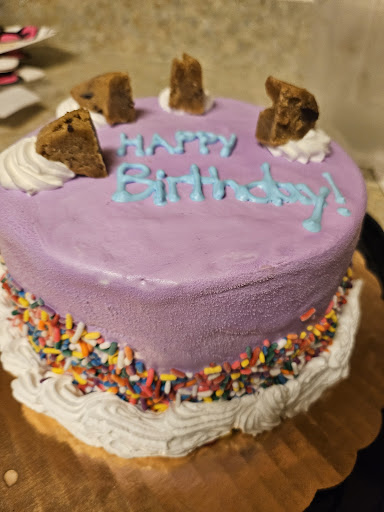 Read moreI just picked up a birthday cake for my husband and made the ten minute drive home. By the time I got home it was looking melty so I put it in the freezer for 40 min. When I pulled it out it had fallen apart. The cake was also very disheveled, uneven and lumpy. The green “frosting” left all us with green mouths and faces and tasted chemically. It was supposed to be peanut butter and we couldn’t taste it at all. There was broken up Reese’s cup on the top. The writing on top looked like the color wasn’t mixed in well. And the look of it was just terrible and...