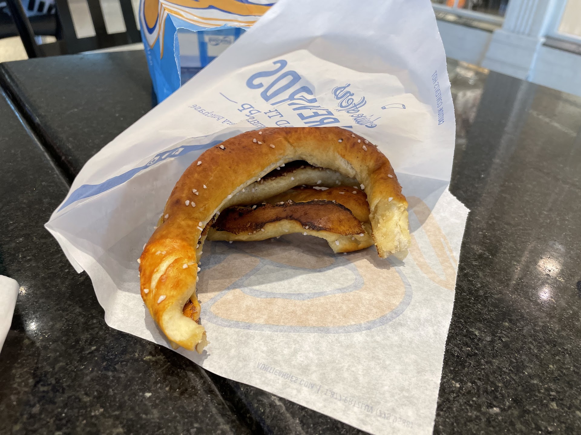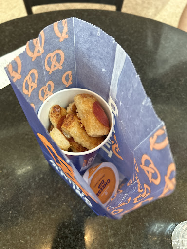 Ā Ā Ā Read moreTwo stars because a 13 year old boy served me and I think thatās great. However, even for his age he lacked any social skills or enthusiasm. I donāt think he ever even talked to me. He could have been deaf, idk. Okay, whatever, but take a look at the pretzel (or pieces) I received. When you pay like $4, you kind of expect there to be some standards. Unfortunately, this was the best service Iāve received at this location. Last time I filled out the survey on the receipt (almost a year ago), was contacted by the manager who appreciated my feedback and promised to send a free pretzel voucher, but never did. I just canāt support this place....