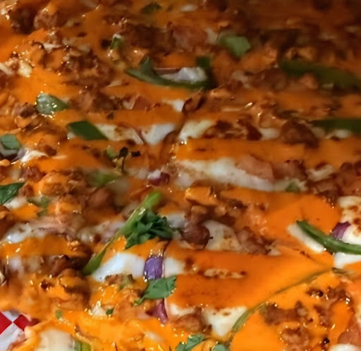 Chicken Tikka Pizza â Juicy, masala-marinated chicken on a cheesy base, bursting with authentic South Asian flavor.