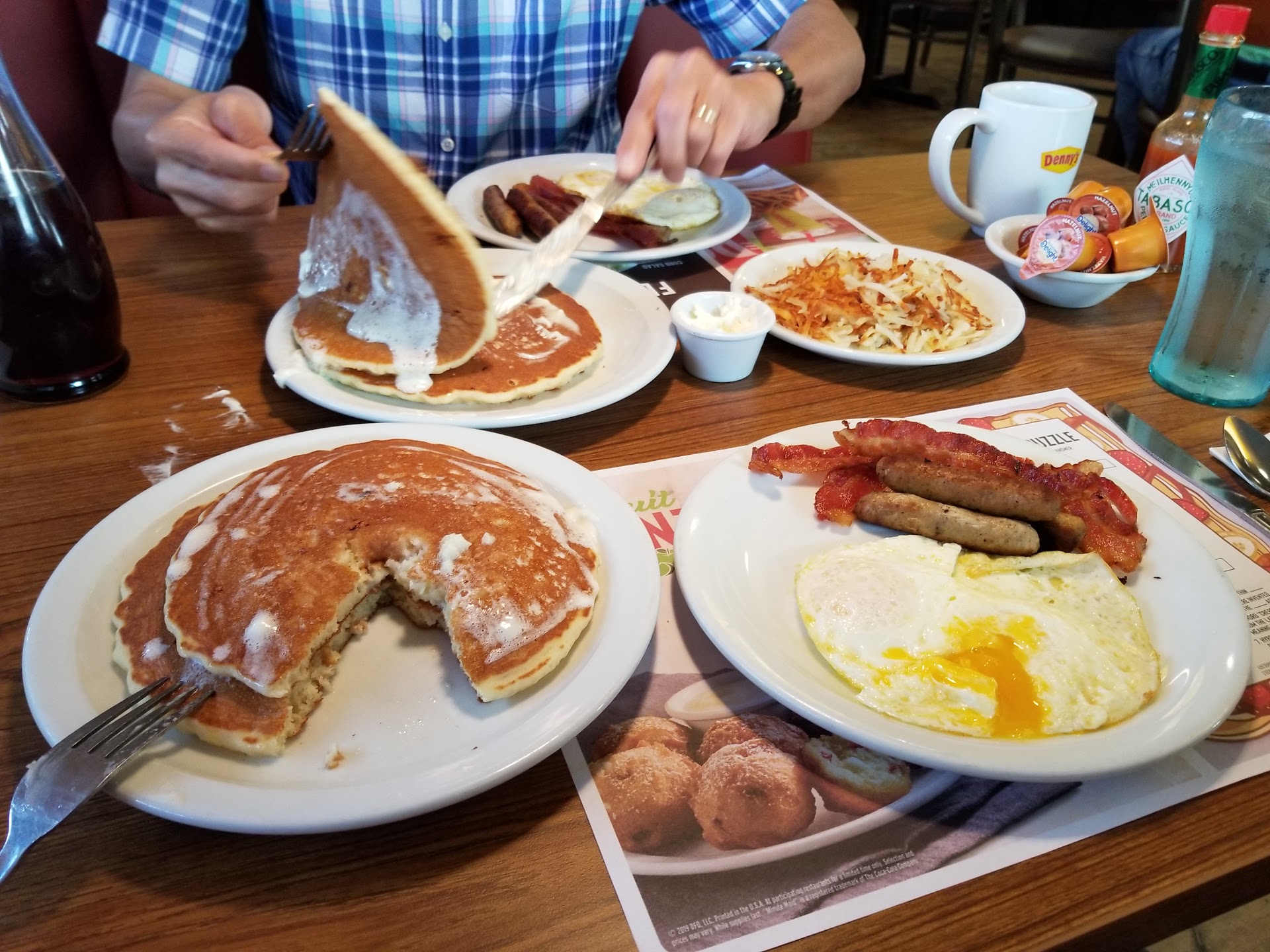 Read moreCame in because I was craving cheese eggs and a waffle.. the moment we walked in we both commented that it was FREEZING COLD. We asked our server if they could turn the AC up a tad, seeing as we were the only table in the entire restaurant, she spoke to the manager, who was within earshot of us, and we watched her as she acted as if she didn’t care. She never spoke to us, she went to the expo window and just stood there. We had ordered a couple appetizers because my boyfriend and I were starving, and while we waited the server did her absolute best to accommodate us. She even let us move to another area that was supposed to be closed (again, only people in the restaurant), which very clearly irritated her manager. When our appetizers came out they were sub-par at best. I always tell people that the nachos at Denny’s are oddly delicious, and I would do anything for fried mozzarella.. today they were both very disappointing cheese on the nachos was unmelted, there was almost no meat, and the cheese sticks were undercooked. Which was even MORE disappointing because the manager was standing at the expo when they came out. We figured that our food would be no better, so we closed out for the apps and tipped our server generously. She was so kind and accommodating, while the manager did absolutely nothing besides exhibit a very clearly bad attitude. I only wish that I’d caught our server’s name, because she deserves a promotion and her...