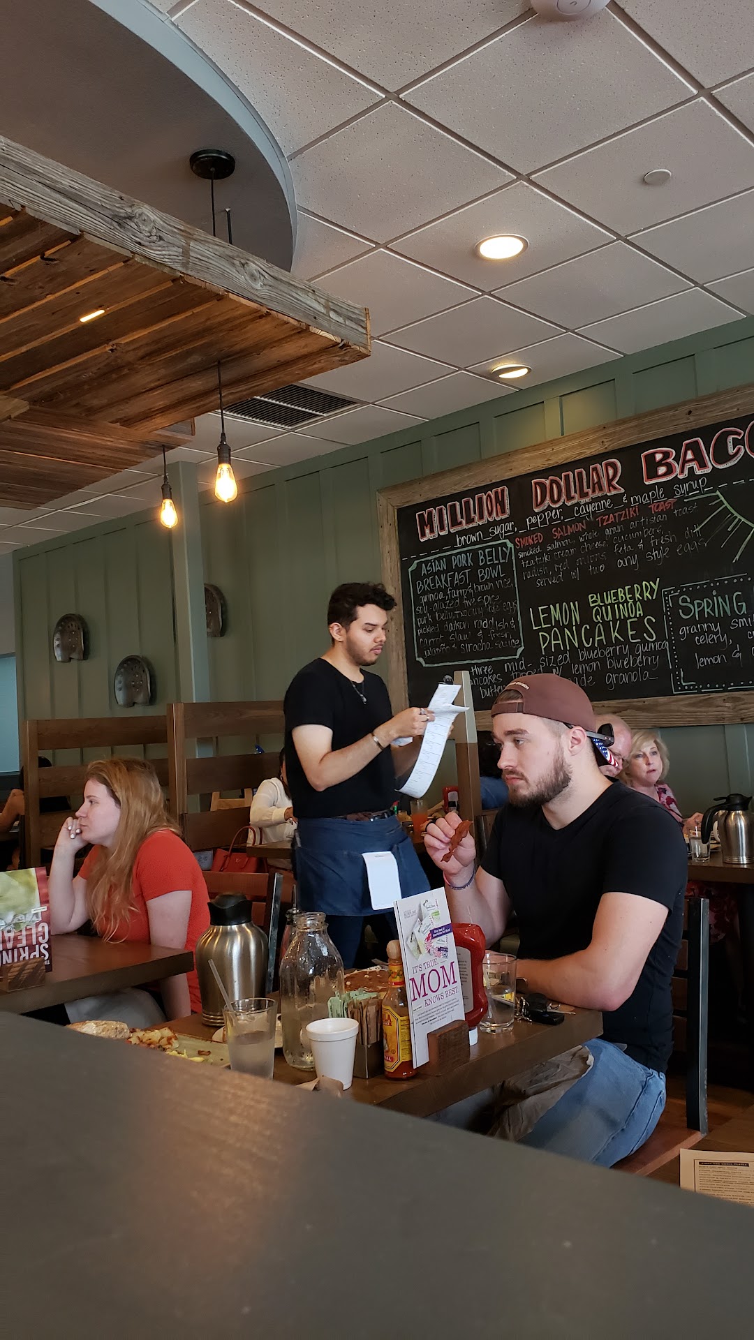 Read moreKathleen was our waitress, she was nice but fake. Zack brought out our food, I asked him for butter and syrup which should have already come out with pancakes. He brushes me off and says it's on the way. I just knew from his tone that he was not going to get it for us. After a while, he doesn't come back and Kathleen didn't come to check up on us. I do see Zack bring another table food and go back to give them syrup though. Makes me wonder what makes them different from us for them to get prompt service and not us. Our food was cold by the time Kathleen came around. I told her that I asked Zack to bring us butter and syrup but it never came, she says she will get it for us and speak to him. While I'm trying to calm down and eat my cold food, Zack comes to our table to "apologize". He says that we're not his table and it was Kathleen's fault that we didnt have our syrup. First off that is not apologizing, I take it as confrontation. Second of all, I understand you're not my waiter but it's important to have teamwork. Either get me what I need or tell my waitress to get what I need. He makes me lose my appetite by then and the manager comes over to speak to us and I see Zack and Kathleen smirking at us. Very unprofessional behavior on their part. I appreciate the manager for speaking to us and allowing us to try the brand again. We will be visiting a different...
