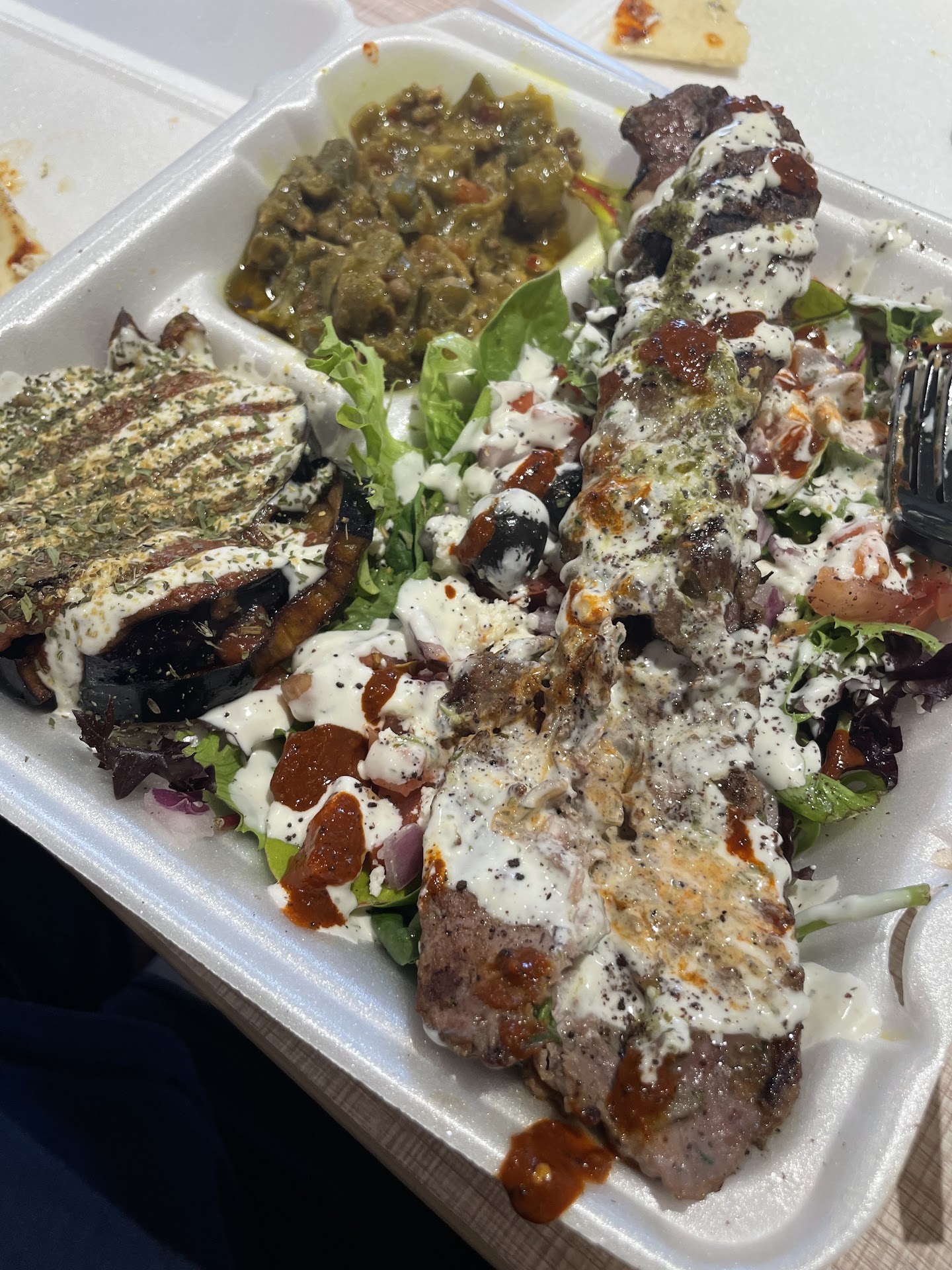 I ordered Gyro over salad with lentils and spinach as my sides. My sister was lamb Kobideh over salad and eggplant and Okra as her sides. Our meals also contained a quarter of a piece of pita bread.