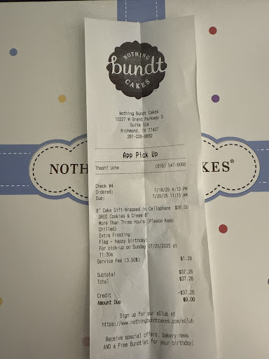 Read moreToday I arrived at this location roughly 20 minutes early as I thought it opened at 10:00a like the Sugar Land location. While waiting in my car I witnessed a woman of Indian descent walk up to the door and retrieve a cake she ordered. I wait a few minutes now 10 minutes before and I see an Asian male approaching the door so I approach as well. I gentleman allow me to approach the door first so I meet with an employee with a name tags that says Christine at the door and request to pick up a pre-ordered cake. She tells me I have to wait until they open. She then proceeds to take the Asian male request and give him his pre-ordered cake. I approach the door again and ask Christine why to I have to wait until the store opens in less than 10 minutes if she giving other people their cake. She tell me the Asian guy was Uber (not sure why that is different) so I said ok but the other lady was not so why? She asks me to wait and I politely abide by her request. Once the store opens I go inside to retrieve my cake and ask again why me only me had to wait for a cake that I pre-ordered. Another employee chimes in and says “Well sometimes we’re nice.” Confused I ask her “sometimes???” to clarify and she confirms that yes sometimes we’re not a let people have their cake. So now I’m offended and asked her if she selectively chose the not give me my cake and she replied well we’re weren’t opened. I politely asked her for a Managers name and she told me she could not disclose that information to me so I asked for an owner’s name or a store number and she also confirmed this was information she could not disclose.