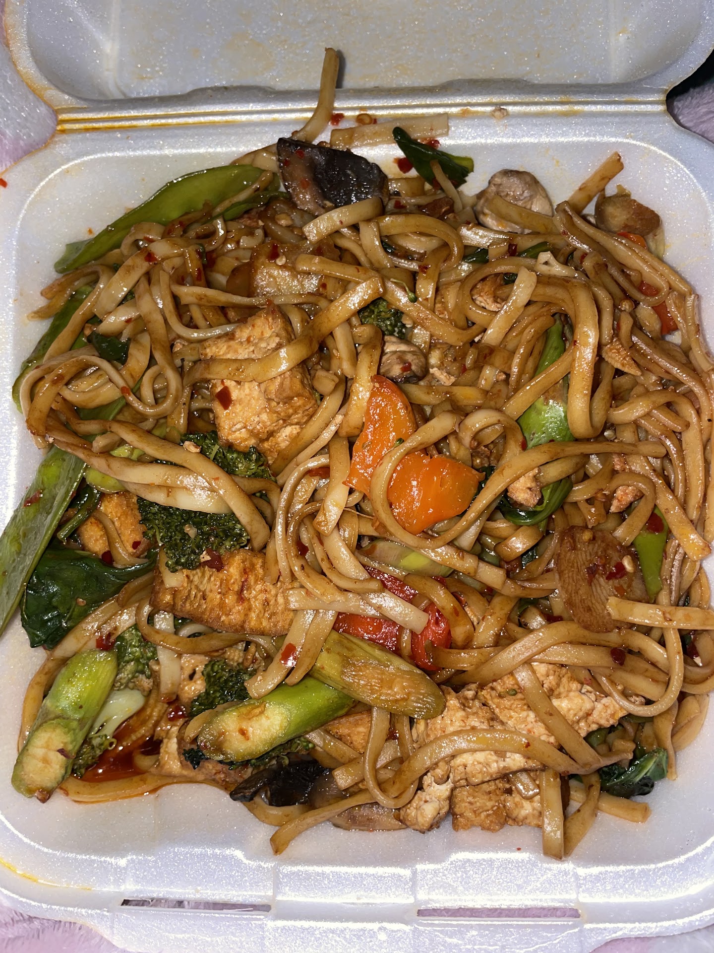 My husband got Chicken Lo Mein. It was extremely salty but dosed in soy sauce. We like our food seasoned but this was not a pleasant taste. It was extremely salty.
