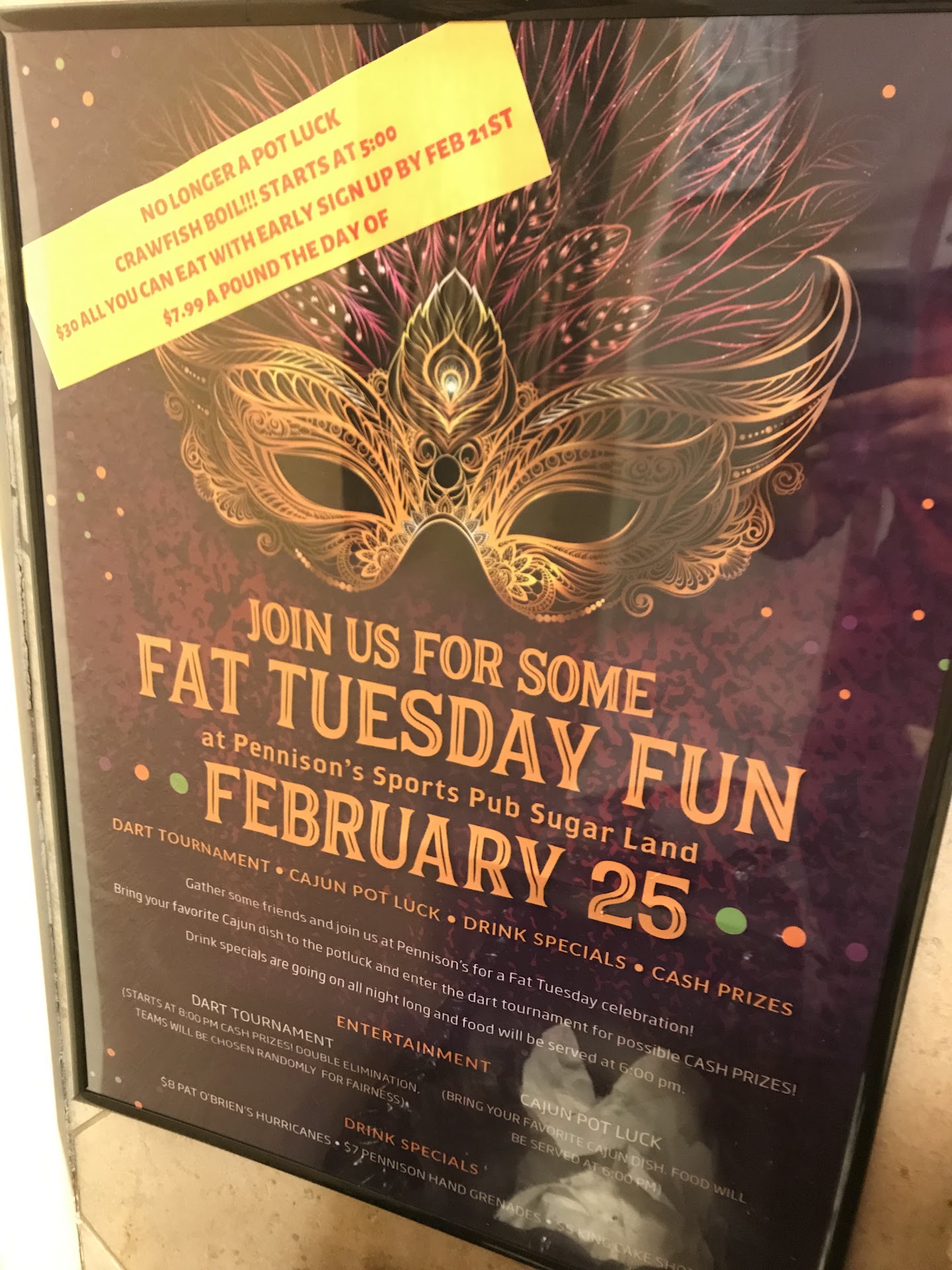Mixed crowd - it was a Thursday night and it looked like I caught some happy hour leftovers and some neighborhood regulars. There was everyone from Pat Benatar and Karen Carpenter to Johnny Cash and Fred Durst up in there. Cool DJ - like, she actually has a personality and is familiar with a wide range of music. Its nice to have a smoker’s bar on a cold night. If you do not smoke, I highly recommend you go anywhere else in Sugarland or Missouri City. I’m a smoker and it was a little too foggy for me. But like I said, it was cold outside and I like to puff while I sip. I’m grateful for the bartenders who are willing to tolerate it. The space is small but cozy. They could dim the lights a bit. Is it a sports bar or a divey lounge? The cafeteria tables kinda threw me off. But really cool ceiling tiles and nice restrooms. Lots of TVs so you can watch from virtually anywhere you sit. Toaster oven bar bites are available here and the staff is...