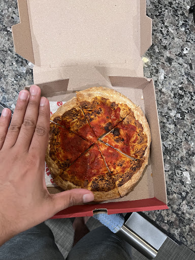 Their thin and crispy pizza CRUST is either burnt if the pizza is made correctly or perfect but pizza itself is undercooked. Stay away from it.