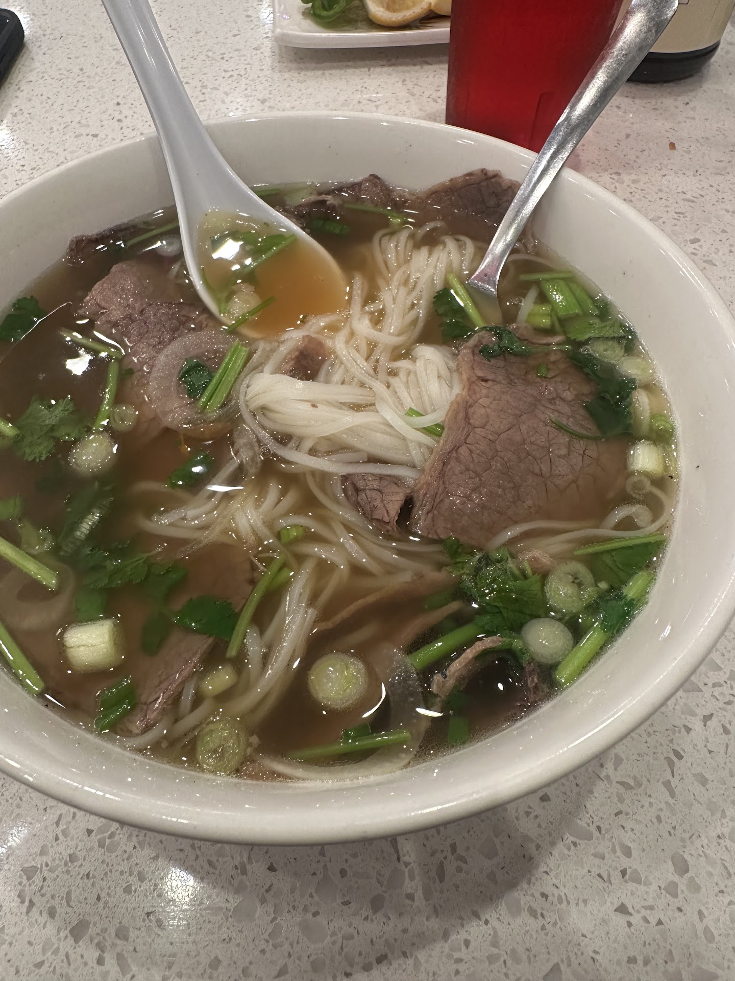 Ā Ā Ā Read moreThe food is good but the customer service is very bad!!!! Thereās only one male server who was so rude! I ordered the spicy beef pho and Iced tea for myself. My daughter and my wife ordered the grilled pork plate and chicken pho. The Iced tea was unsweetened but he doesnāt bother to give me some sugar packets, I kept on waiting for him to bring some but after 10 minutes I have to stand up and approached him while heās sitting at the counter for some sugar packets that were behind the counter. During order taking I was asking him if one of the pictured item is the grilled beef spring roll, but instead of answering my question he just said, āthereās a lot there you can choose!!ā. How hard is it to say yes or no to a customer asking you a straight question. Now the worst part is when I was already eating my spicy beef pho which by the way was really good but a little spicier than the other ones I tried from other place, I started coughing so hard because of the spicy broth that gets to my throat. Iām totally out of Iced tea to relieve my coughing and I was hoping the server would come and find out if I need more tea to drink and refill my glass. We were trying to get his attention and I was coughing really loud that my wife has started to start worrying, but the server just calmly watching tv at the counter like he doesnāt hear anything at all. I had to stand up and hand him my empty glass of Tea so he can refill it. I immediately sat into my chair while waiting for him to come back with my tea. He came back with a glass of tea but you can see his irritated face flashing at us. The worst customer service we ever had from a restaurant. Would definitely not go back there ever again and Iāll make sure I will tell everyone I know to...