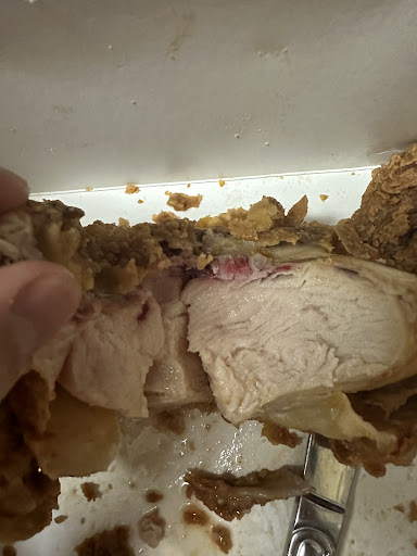 I get my order pretty quickly. I head back to work. I grab the leg and take a bite. It is cold and taste like old chicken. I hate going back so I decided to such it up. I open the box all the way and it's another leg and a thigh. At this point I decide to go back, because I don't eat thighs.
