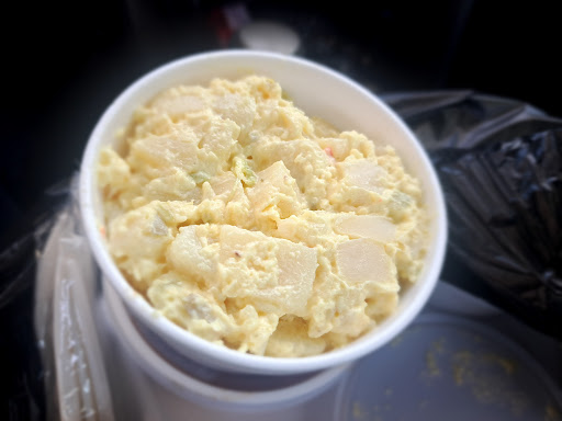 Chicken 5\10 Baked beans 4\10 (I tried to eat it but couldn't. I haven't thrown food away in a long time. Today, I threw too containers of food in the trash. This and the dirty rice) Dirty rice 4\10 I was not a fan (May Allah forgive me. It was so awful.) Potato salad 5\10 tasted store bought Cabbage 4\10 tastes like it was a day old, mushy Mac 'n' cheese 4\10 lacked flavor and cheese plus it was bit mushy