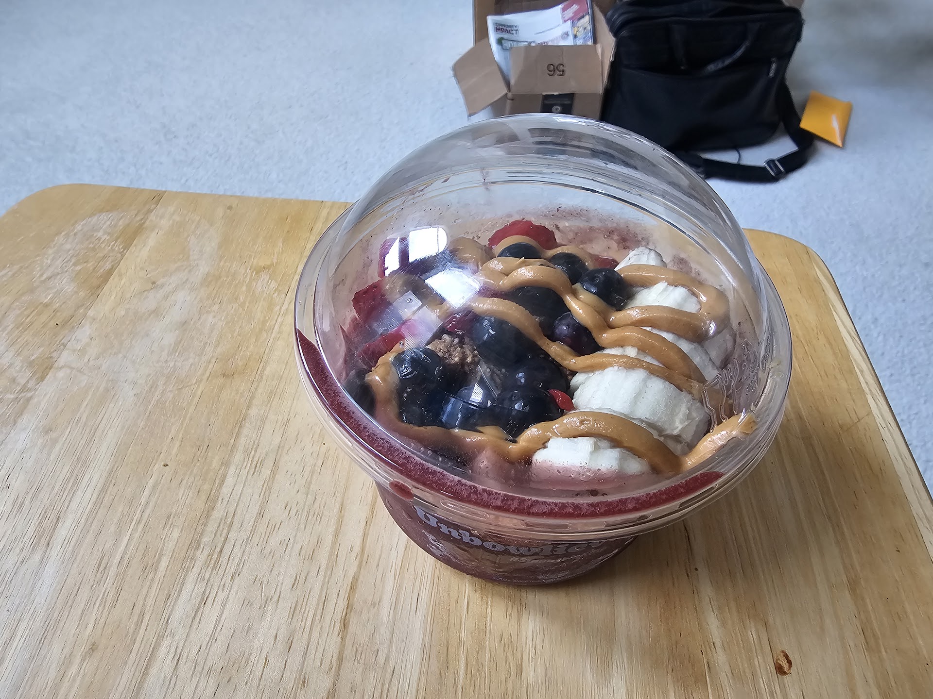 Read moreI ordered 2 smoothie bowls. There were no other customers in line at the time I placed my order. The first bowl was made, then a second bowl was made. I was told that the second bowl was not mine. Apparently that was for a customer that came in after me. In the meantime, the first bowl is sitting out melting. It was 27 minutes that passed from the time I placed my order, until the second bowl was made. When I brought this to the manager's attention (Edgar) he indicated that they had gotten busy. I pointed out the issue with the second customer, he said that it was a mistake. Edgar was not there when I placed my order. Predictably the first bowl was melted (soupy) by the time I got it home. Also it was quite a bit smaller...
