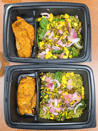 The grilled salmon was cooked to perfection — tender, flaky, and lightly charred for a subtle smoky flavor. It was served over a fresh base of cilantro lime rice and black beans, and topped with a vibrant mix of spinach, diced mango, pickled onions and jalapeños, pistachios, and a smooth, flavorful avocado sauce. Each ingredient played a role in creating a balanced bowl that was sweet, savory, spicy, and crunchy all at once.