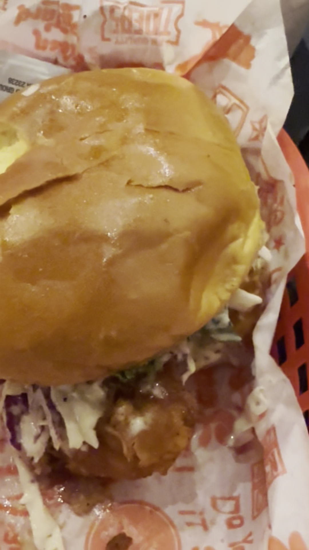 I waited on a chicken sandwich for more than 20 minutes. There is not single trash can available for the customers which wouldâve reduced the time for the cashier to serve the customers. The cashier was clearly upset by something because she did not seem to be happyâprobably knowing that the restaurant isnât running efficiently. The owner needs to step in to get a temperature gauge on this place, and add a trashcan station for the patrons.