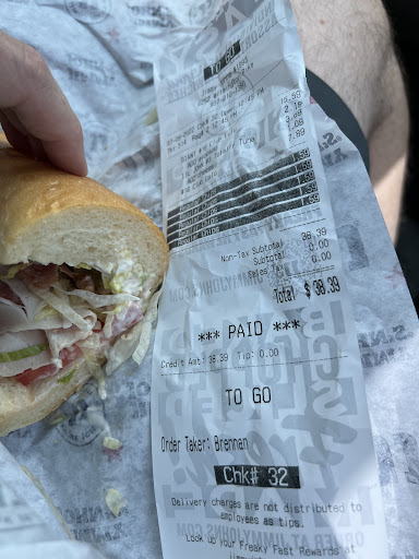 Ā Ā Ā Read moreI was informed my door dash couldnāt be complete. The driver walked off the job. No problem Iāll go and pick it up. Staff was polite and friendly to me walking in after the lobby was already closed. Group infront of me was upset and got a little rowdy towards staff member and manager while I was picking up (because lobby was closed). Manager explained everything in detail in a very professional manner, and they left the store peaceful thankfully. I didnāt want to have to turn up the jets with them. Always a delicious sandwich that fresh, fast, and tasty. Restaurant is clean and inviting with a friendly and family like vibe. Kudos to all...