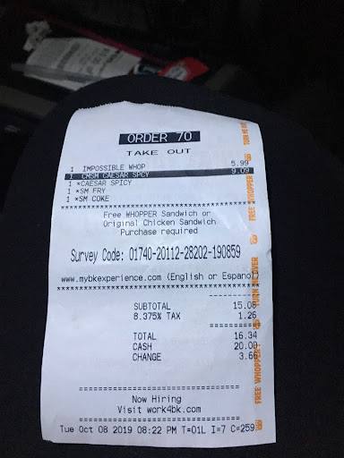Read more7/21/22 @3pm...First off my food was good, fries hot, soda crisp. It was the customer service before and after that sucked! I was rudely rushed through the order process in the drive thru that ended with "Is that it?" To then wait at a dead stop in the line for 9mins. 1 minute at the window with no acknowledgement. He took my card and then handed me back just my card no receipt. When I asked for the receipt he asked what? And then proceeded to give me the washed out merchant copy. I was unable to do the survey online since I can't read the receipt. When I got home, I did attempt to call back to get the restaurant number and a women asked me was I in the drive thru or did I come in? I asked does it matter the restaurant number doesn't change from one to another. She said it does I argued and she relented and gave me 14218 for the Burger King on Anderson Dr in Suisun City CA. SMH, this place is off the hook, I will not be returning...