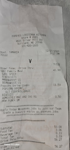 Read morePuledl up to the drive through Sunday at 11:30 to grab a bite before the big Commanders vs. Cowgirls game. After waiting several minutes (we were the only car in line and the restaurant had 1 whole person inside) I had to yell "hello" into the speaker in order to get a response. I ordered a #2 combo (Ghost pepper chicken sandwich with bacon and cheese, with a side of Cajun fries and a Sprite. After waiting at the window for about 3 or 4 minutes, no one had even attempted to get my card for payment. There were about 3 or 4 ladies grouped up near the window having a conversation about Aldi's, and when they finally opened the window, the first thing out of her mouth was "it'll be 3 minutes for the bacon, did you want to wait or did you just want cheese?" Feeling impatient, I said "forget the bacon and I'll just have it with cheese." Again, I wait. At the 3 minute mark, I still hadn't gotten my sandwich, so I asked "is the bacon ready yet because it's been over 3 minutes, so you might as well pit it on there now." Her reply...we didn't cook the bacon cause you said you didn't want it!" No ma'am...I wanted the bacon, just not the wait, but I ended up waiting anyway! She finally hands us the bag and I reach in to grab a few fries and they were less than lukewarm and looked/tasted like they had been sitting for way too long under a heatlamp. Frustrated, I get out and go in to tell them that my fries were cold and can I have some fresh ones. The "manager" yells back to drop fries and then asks me "did you want something to drink while you wait?" I told her that I ordered a Sprite with my combo, and another girl yelled out that she gave it to the person in the car. I finally get my bag, hop in the car, just to find that she never gave anyone my Sprite, my fries were STILL cold, and the chicken sandwich was lukewarm, with unmeted cheese and sauce slopped on the bun! Pissed, and having other things to do before the game, I just left.