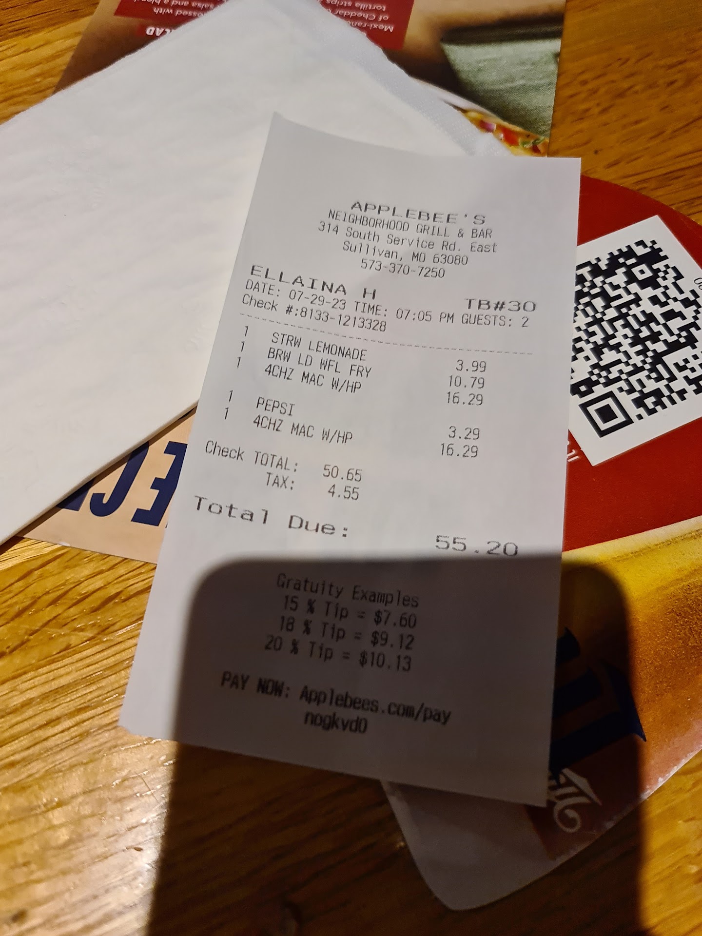 We both ordered the Steak dinner and had the Mozzarella cheese sticks and the Spinach Artichoke dip for appetizers. My wife is picky and she has never had the Spinach Artichoke dip. She loved it ! I'm not big on Spinach either but I must say it's good.