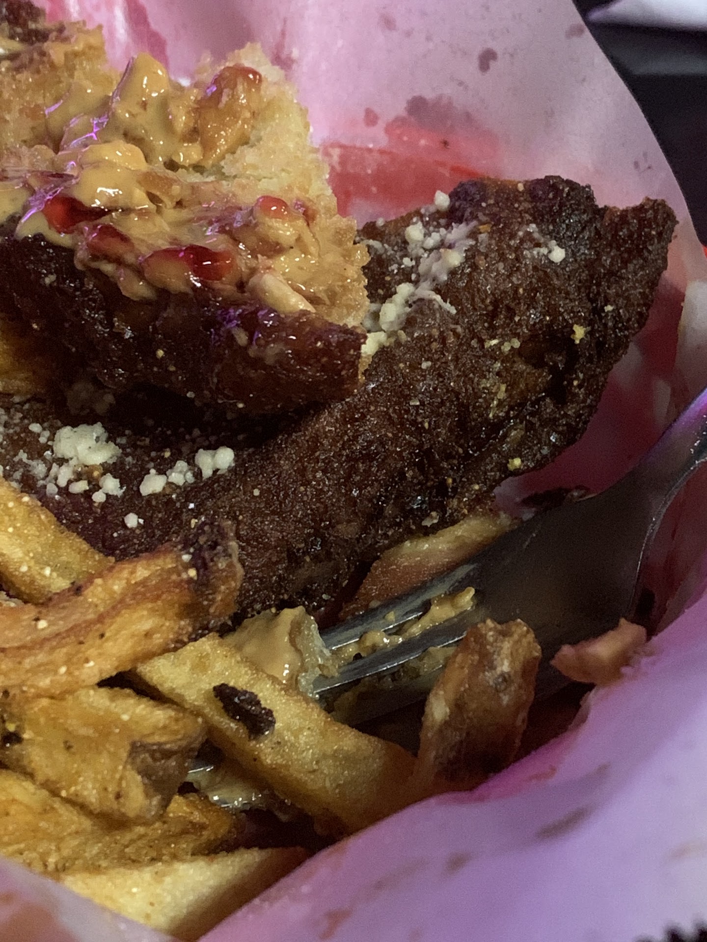 Reluctant to make this review, but I'd be lying if I said I would recommend eating here. Back when they were Hole in the Wall, they were outstanding and I absolutely loved eating there. They were always delicious, fresh, and you could tell there was care in the food being produced. Since their rebrand, the quality has plummeted, their menu has shrank to just a few items (if this is due to supply issues then understandable, but issue is still there), and it's just a different atmosphere that feels rushed. I hate for this to be harsh, but it's the reality of things and is a shame to say the least. The only thing that holds up consistently is their coleslaw as everything else I have had/ friends and family have had has been meh to say the least. The pork is good, but not memorable and it breaks my heart to say their wings just aren't good. They're smoked and then fried, but every time I get them, I only taste the fried aspect considering they're rock hard every time. I think finding a happy medium, or just simply smoking them and getting that flavor would be the best bet as wings are good to be crispy, but when you may chip a tooth, I think it's too far. Personally, they should make an adjustment by getting back to their roots to make the proper adjustments and maintain consistency/ satisfaction levels. Doing so may also help them reintroduce fan-favorite items and get more time to find help because I believe only having 1 person in the kitchen is putting too much work...