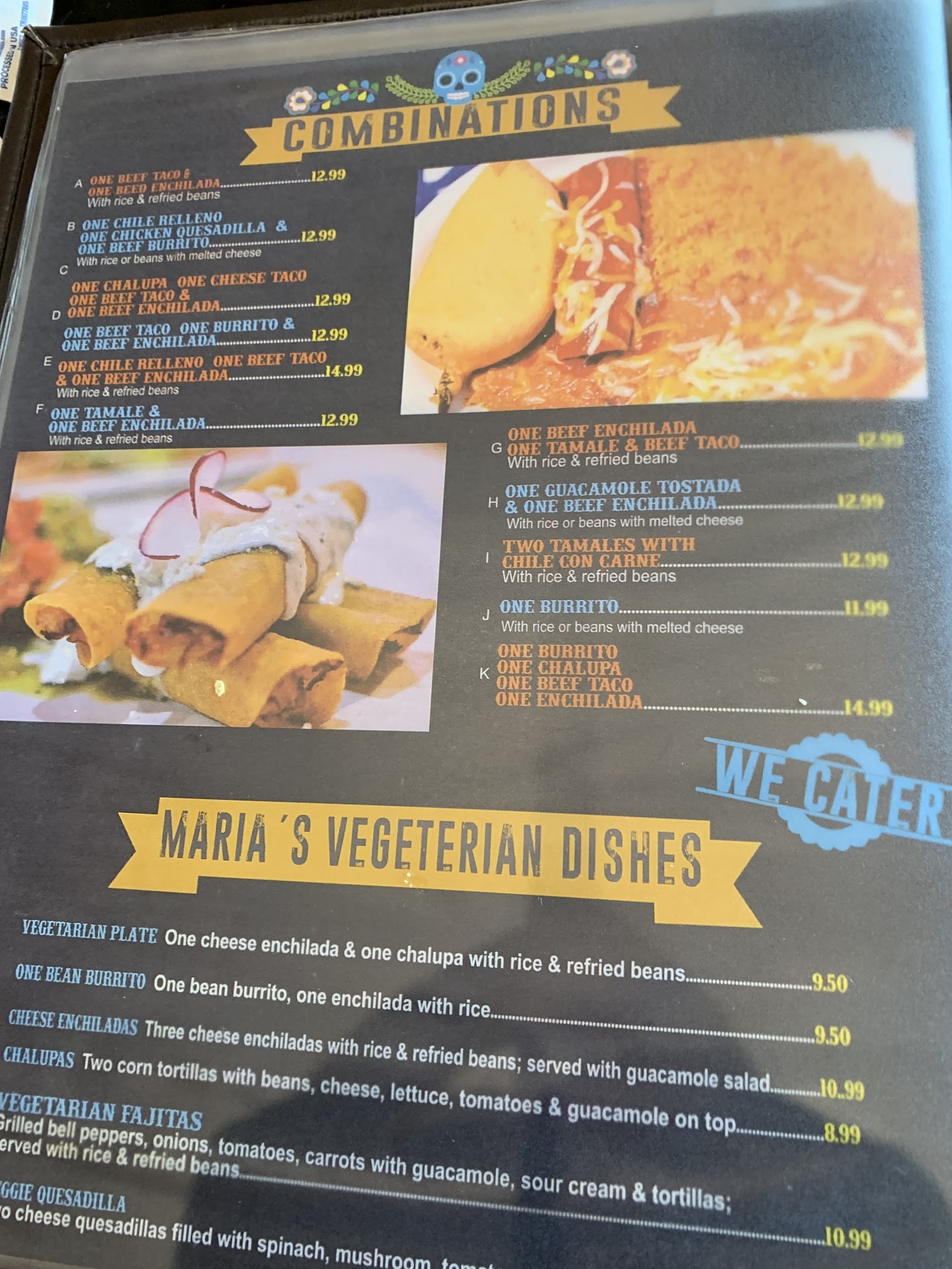 Read moreWhen we first arrived, a band was playing. It was really loud. So loud we had to get close to each other and almost yell to hear each other. I admit, this kind of set the tone for the evening. Not an enjoyable one. Our server was extremely nice and understanding. It took us a few minutes to get our order in over the music. After she took our order, the music got a little lower, but was still loud. When our food came (and really fast), there was one plate missing. Seems our waitress forgot to put my order in. One of our orders was a vegetarian plate, but the burrito had seemed like it had meat. The waitress showed us the order was a vegetarian plate on the receipt. I tried the meat and it did taste different from other meat. I was very pleased with flavor of the food. The salsa that came with the chips was perfect. Most Mexican restaurants have their salsa too spicy or just mild with no flavor. Maria's salsa was chunky with onions, bellpeppers and tomatoes. Very enjoyable. I plan to go again when the band is not there. They are there on...