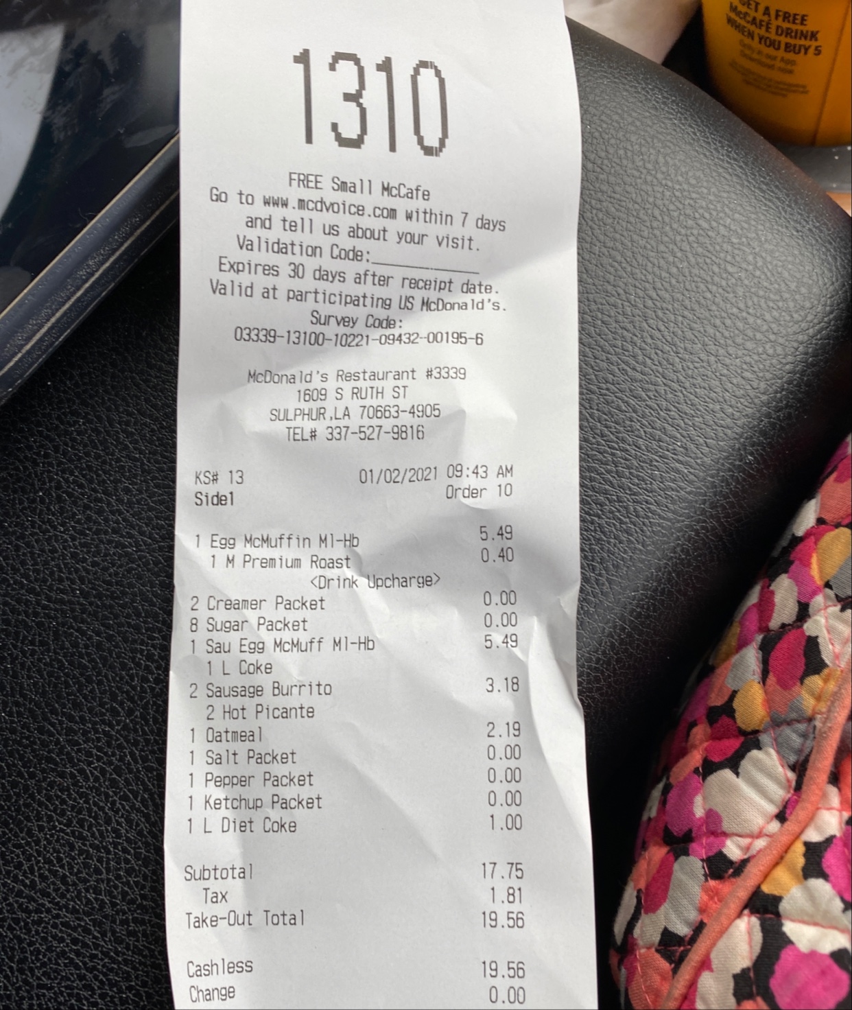 Read morePassed thru this city on way home and decided to get breakfast. We went thru drive thru and ordered multiple items including a coffee with sugar and cream on the side. After we paid at first window, we arrived at second window where we were given our bags. Sugar, cream and straws were not in bags even though it is clearly on the receipt so we asked for them and were rudely told we would need to pull up and wait for those items to be brought out. My husband asked “we need to pull up for just that?” And she is responded rudely “just move up”. The time it took for her to tell us that she could have easily given us our stuff. So we pulled up and sat there for 10 mins and nothing. We tried the side door and was locked so we looked up the number and called inside. They hung up on us after we asked the first time. So we called again and they said they would be out shortly. Finally after 15 mins a man brought up our condiments without a apology. All this took over 15 mins when it could have took 15 secs to begin with. I gave 2 stars because the food was still good. I will avoid going here tho cause the staff was so rude and we felt like we were being punished for something they...