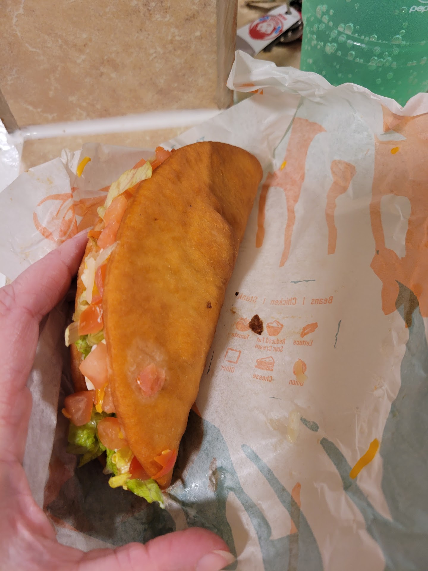 Ā Ā Ā Read moreBy far the absolute worst taco bell I have ever eaten at, this is now my 5th time eating there and figured by now they surely would have upped their game after all the complaints from when they first opened. Sadly mistaken they do not deserve the Taco Bell name, maybe taco hell, but even then you'd expect your food to be hot! Everytime I have been here has been a horrible meal that has gotten worse the longer this place stays open. There portions compared to a normal non franchised taco bell are extremely small even when you order extra meat extra cheese, food is always cold and most the time isn't how you ordered. Attached is a picture of what $2.17 will get you if you're a person like me and would chew on grass...