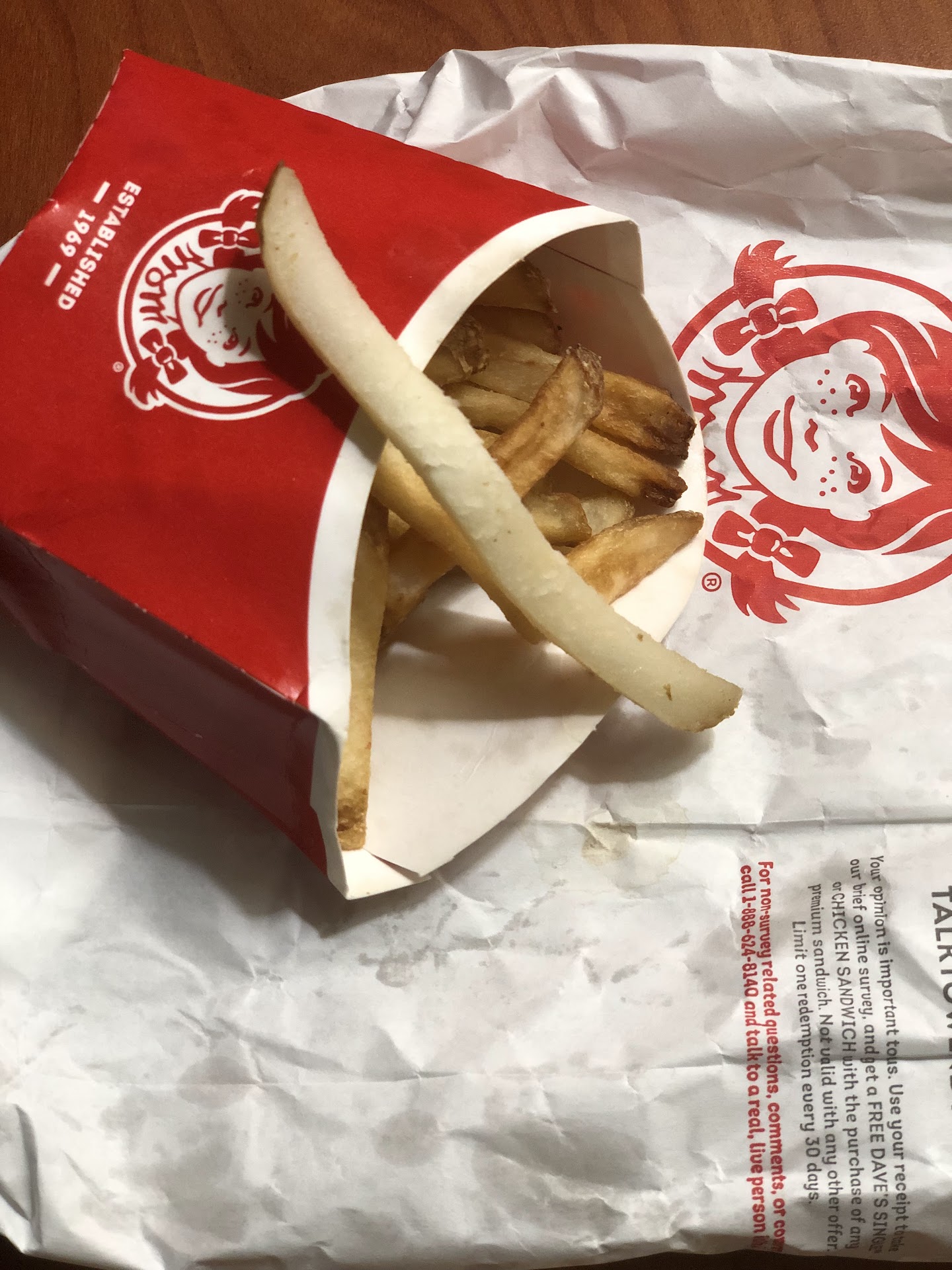 Read moreEasily the worst Wendy's experience. Not because of the staff, they were nice enough. Also not a rip on my meal. Food wasn't great (salty chicken, wilted old lettuce), but it's fast food, so what do you expect, right? The thing that made this visit so bad was the restrooms (ladies). Two stalls, both dirty and out of toilet paper, but one was clearly superior to the other thanks to it having a whole toilet seat. The other toilet seat had a third of it that was missing and neither hinge looked attached. The door handles were seriously gross and the sink faucet had stuff growing around it. I feel like the lack of upkeep in the restrooms has to indicate how this restaurant runs the rest of its business. Which is an awful,...