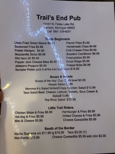 Read moreSaturday 10/15 We stopped at trails in a pub for dinner. Drove 3 hours up north, got our motel. As always We stop by at trails pub for diner, food was good but service sucked. Party of 5 sat down(no Alcoholic beverages or prior drinks ) owe ordered food, 2 hamburgers a wet burrito and a chicken dinner. Everyone had gotten there food beside me,10 minutes went by and still no chicken dinner. I went to the bar and spoke with Becky the owner about how long it was taking. She good instantly mad that I even said anything about our food. All I asked was how much longer for the chicken dinner to be done. Five more minutes went by, everyone at our table had finished thier food. Waitress brings out the chicken dinner and I explained to her I no longer want the dinner because everyone was done eating and ready to leave. NOW... the owner Dan came up to the table and aske me why I didn't want the food. I explained it to him, he gets in my face (6 inches) from my face and starts screaming at me, that I'm going to pay for the dinner. I then explained again that we waited approximately a hour for the chicken. He screaming at me telling me to get up and leave, I did. I walked out the front door and the door was owner followed me out and 3 of his buddies trying to fight me. My friend came out to check on me and then 2 more his buddies follow him out. Two of us and the owner and his 7 buddies wanted to fight. He pushed me and my friend, screaming at us... The whole time this is going on Becky the owners wife was holding my wife hostage inside, screaming at her. Made her pay for the dinner that the owner chucked on the floor before he kicked me out. We are not rowdy folks.. Owner Dan &...