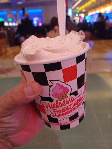 After eating Nielsen's Frozen Custard, I may never eat another Dairy Queen Blizzard again in life! I ordered the Caramel Cashew Concrete, and I could instantly taste the difference. My tastebuds went wild, and their claim of being premium Ice cream with no artificial sweeteners and preservatives has to be true because I could taste the difference from the Dairy Queen Blizzard. The custard texture is thicker and richer, and as hot as it is in Las Vegas, I can't see myself ever purchasing anything other than custard when I want a sweet treat to cool down. I will try different flavors, but it will be a while before I eat anything other than the Caramel Cashew Concrete because I loved it! The cost of the concrete I ordered came out to ten dollars and some odd change.