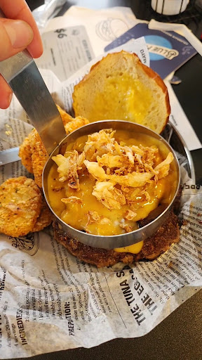 Read moreWas in town for an event and gave this place a go based on reviews and Americana offerings. We were sat quickly and received warm service. The drinks were prompt and refilled as needed. Starters were decently quick despite the restaurant being quite full. We had the pickle fries and onion rings and loved them both. Our meals were well timed and well prepared and hearty portions. The beer battered fish and fries was delicious and the Angry Neighbor burger was an absolute hit! I was told by my partner that the wings were a solid 4 out of 5, but were decent- just not to the level of delicious they managed to achieve with their burgers. If you get the opportunity, give this local joint a chance. We think they're worth it. The only potential point of improvement we noted was that the bathrooms really do need deadbolt that indicate occupancy clearly as checking for light under the door just feels not great especially while standing nearly in front of those waiting to be seated...