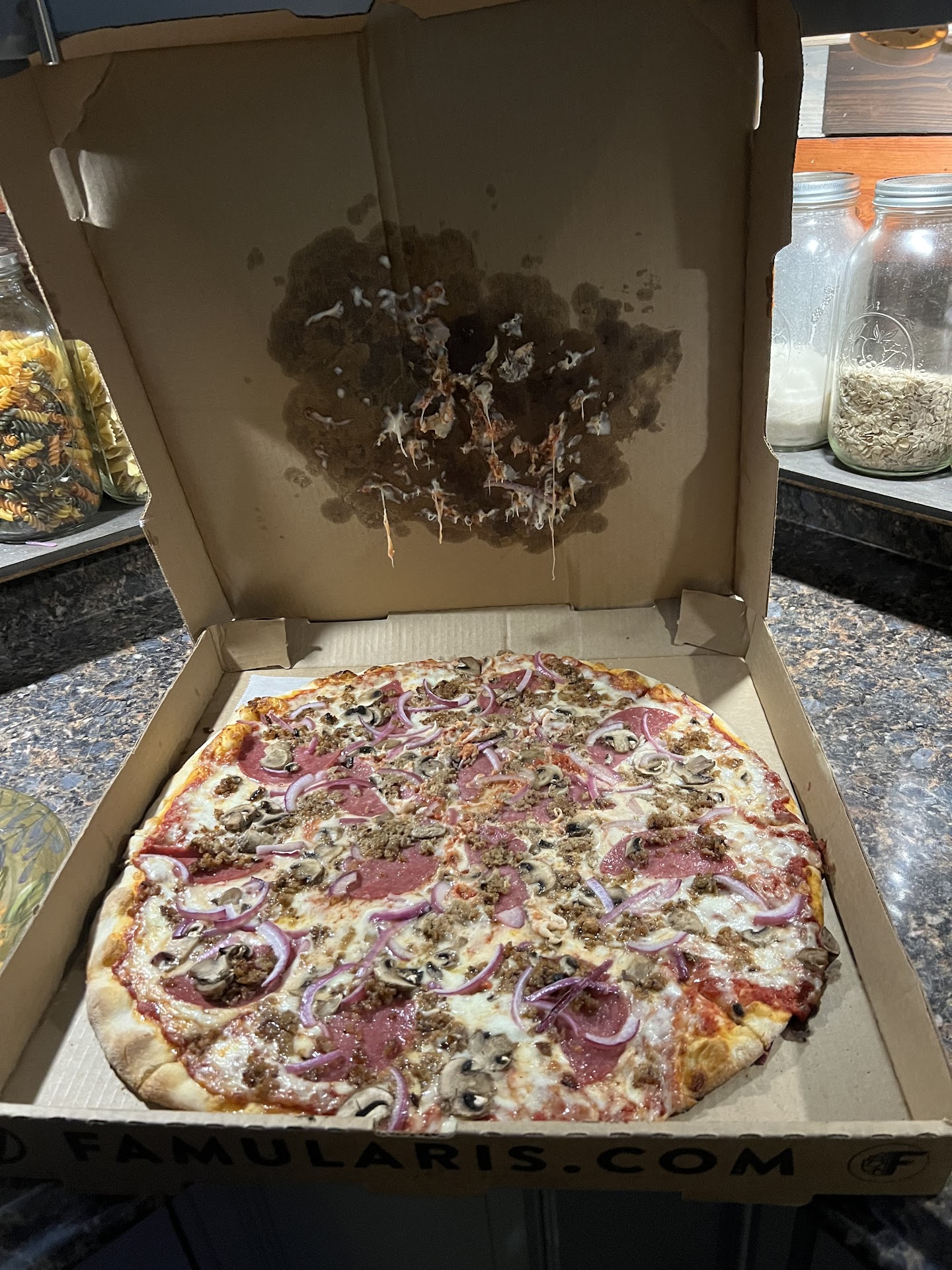 Before I start I want to make it know that this review does not reflect the workers who are top notch hard working folks who are most likely underpaid for their contributions to the company. First of all I had it delivered 2 miles with a $7 charge for delivery and tip (can u please tell me if the driver gets the $7 or the store?). Not only is there the regular tax there is another tax added that seems like a joke at first. I pay $37 for a pizza and by the time it is all said and done the total turns out to be $53 dollars. I donât usually do delivery but getting over Covid. You guys are just as bad as every other business who are taking advantage of people today. Between housing market and I treat rates, ALL store prices going up you are just another company who leads by greed. Now if u look at this overpriced pizza you will set that most of the cheese and Garlic in the pizza is stuck to the cardboard. They have those little white things that u place in the pizzas and it keeps it from taking the top layer of pizza I paid way too much for. I am sure the company is just trying to save money during this trying times. Let me ask u a question. How many hours of work does an employee have to work to buy a large pizza for their families. I was going to not comment on the overpriced food until I opened that box to see my toppings stuck to the roof of the box. And FYI this is not the delivery drivers fault. Itâs the company not wanting to pay for the...