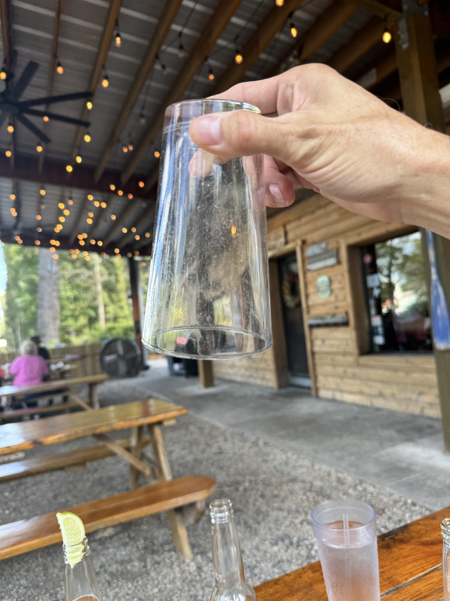 The bad was everything but the food. Parking is a nightmare with a small lot by the restaurant only for pickup or handicapped. The overflow parking is a small dirt lot further down the road and it was overflowing. We had to park down the road in a church parking lot and walk back to it. We had a party of 6 and could not be seated until all were there. If we had been seated, we probably would have had drinks and appetizers. There is very little seating inside so we were seated at picnic tables outside. It was cold but they did have a propane heater on each table so it was tolerable. What was not tolerable was the very loud road noise since the front seating area is right next to a busy highway. It was hard to hear one another.