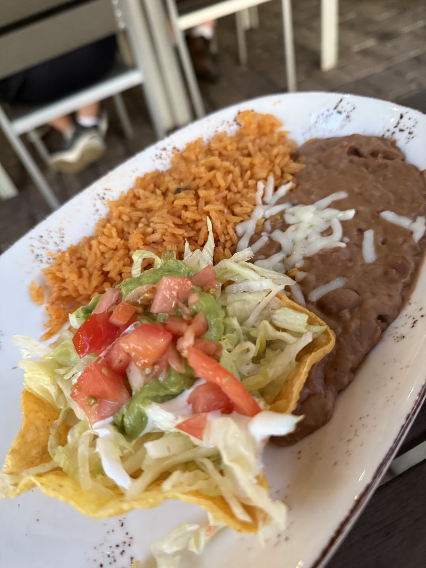 Was good. Had 2 soft tacos, plenty of meat. This is a good place for couples, when 1 of them doesn't like Mexican, I would suggest the gringo meatzilla dish or the chicken/shrimp with...