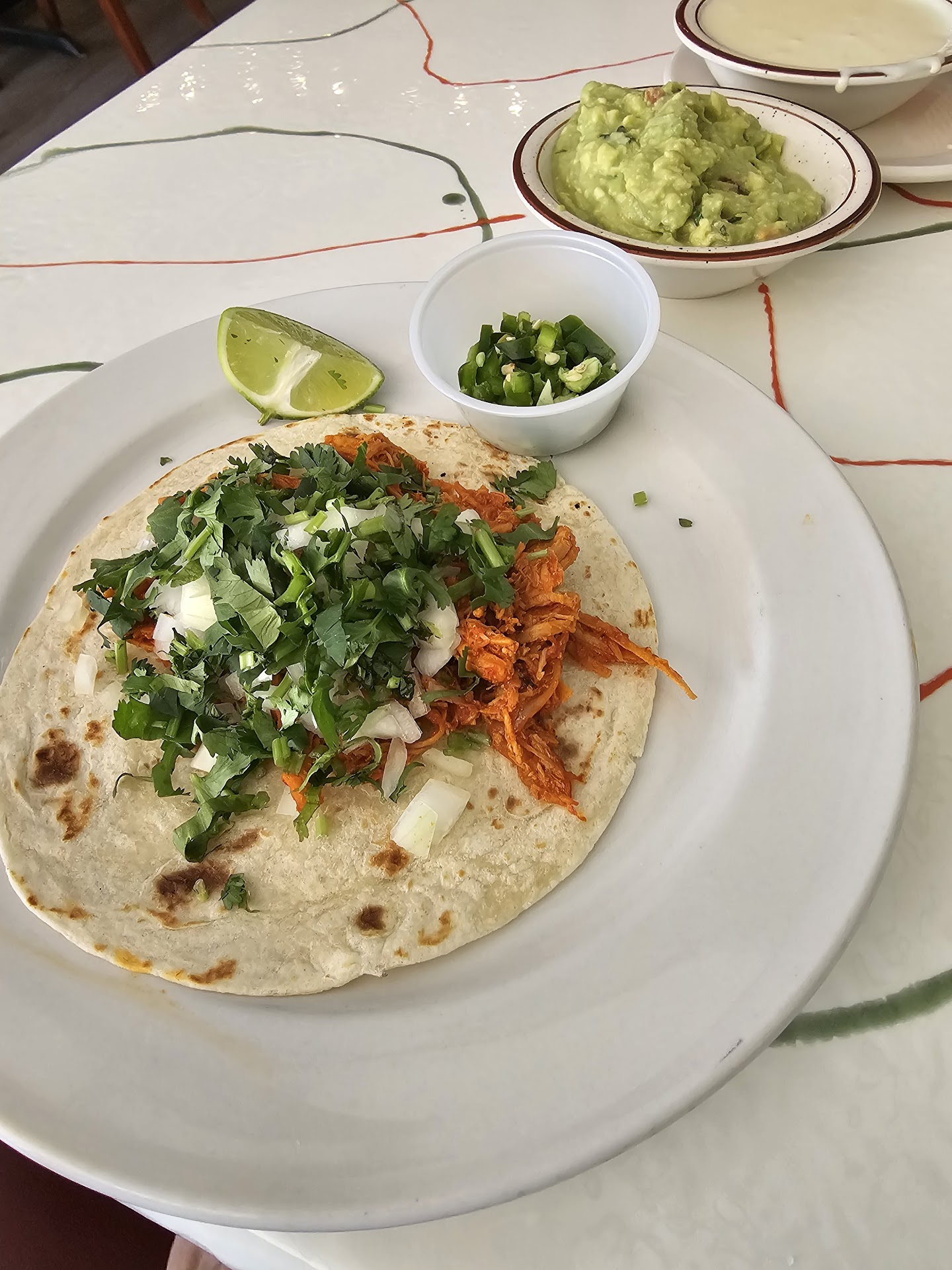 I ordered a street taco in a flower shell and added fresh cut jalapenos. Delicious! Aside from this, also, the food was great and very authentic.