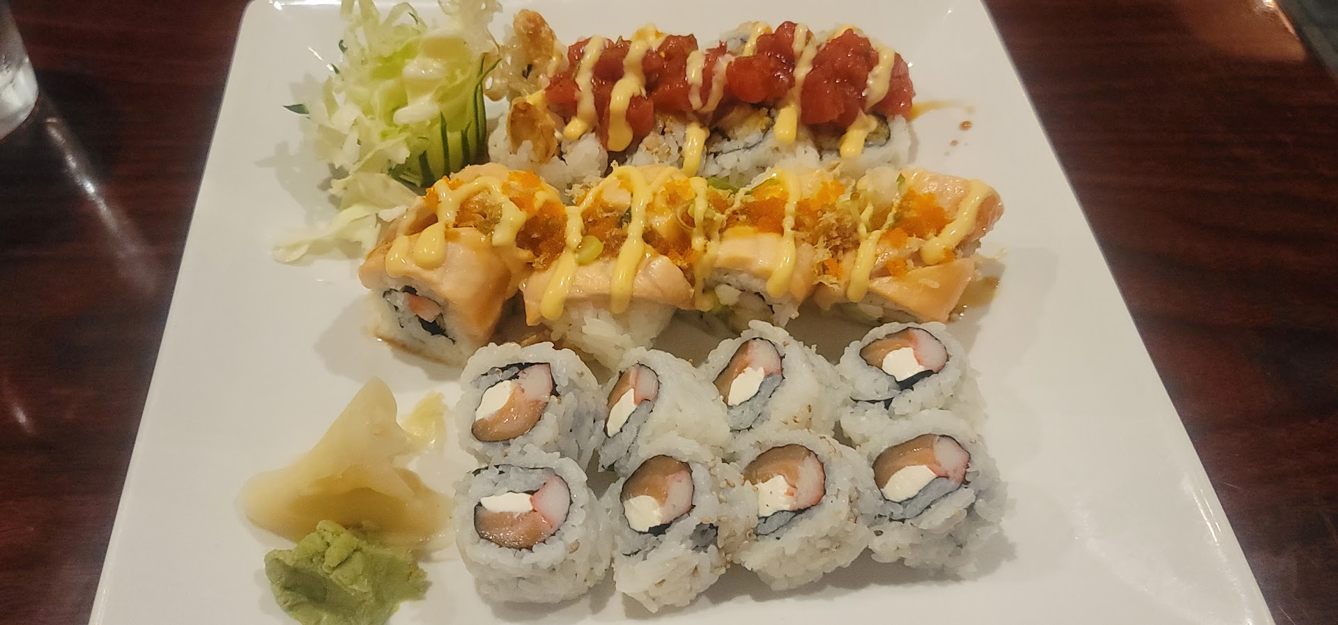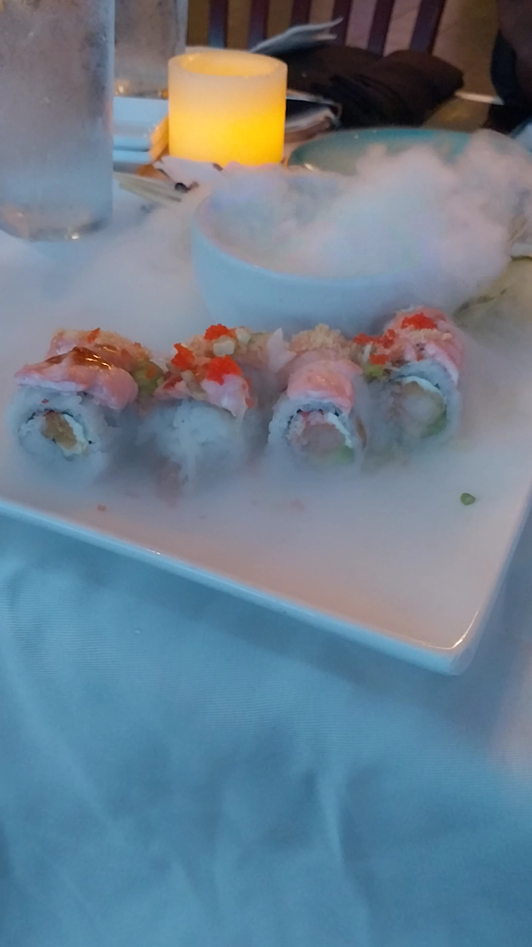 Anywho, THE FOOD! The food is DELICIOUS!!!! I ordered the bed salmon roll and a shrimp taco. My date ordered a hibachi with filet mignon, shrimp, and chicken. The hibachi came with their Thai fried rice and veggies. My sushi was magnificent. The hibachi, because of course I can't just watch him eat it and not try it for myself, was very tasty. My favorite about the dish... the steak was cooked as ordered, medium rare. He even had enough hibachi to take home for a second meal.