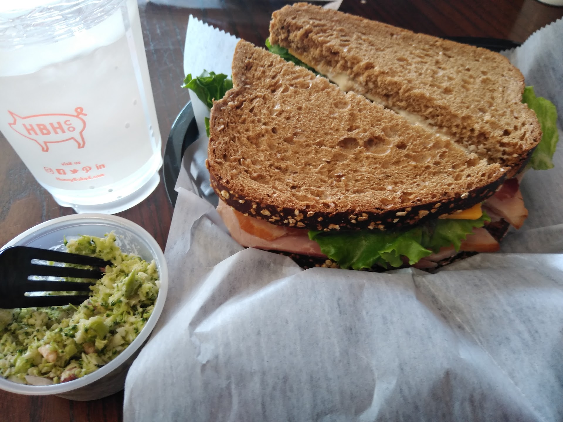 What We Ordered: BBQ Smoked Stacker Sandwich: Quality, tasty ham that was very fresh. For me, it had too much barbecue sauce, but despite that, it was good. The Honey Baked Sandwich: Also made with quality, tasty ham. It was fresh and deliciousāI liked this one more than the BBQ sandwich. Side of Broccoli Bacon Bliss: It was okay, but the portion was very small. I wouldnāt order it again.