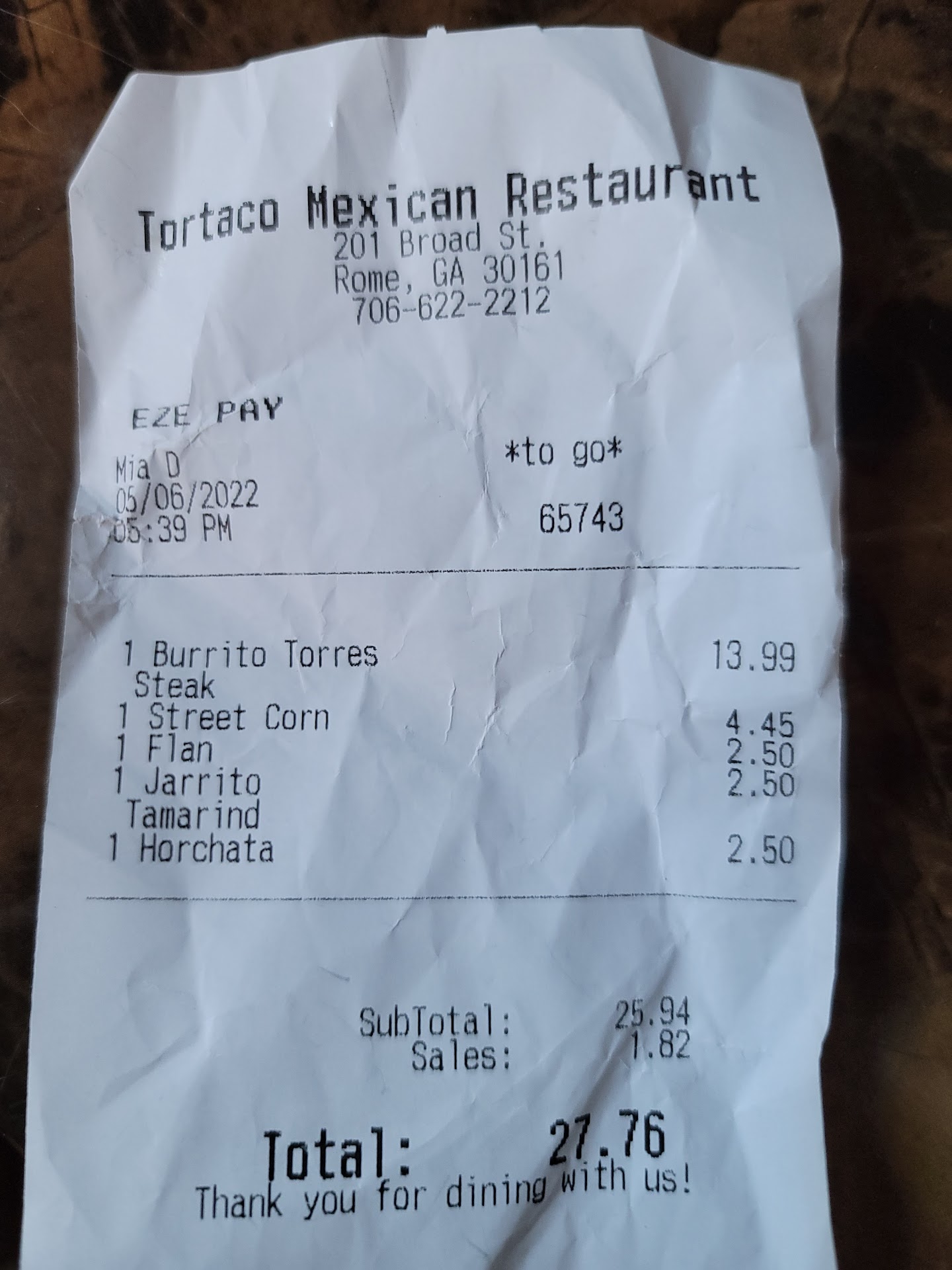 Read moreA lot of little mexican restaurants pop up at this location and they're usually never any good, and Tortaco is no exception. This restaurant has not figured out how to package their to go orders. The street corn was in a styrofoam cup outside the bag with a lid on top that was too big. The watery refried beans were put in a stryofoam container that one would typically use for salad and the beans were leaking out all into the bag. The watery salsa was put in a styrofoam container that was cracked down the side so it too was also leaking into the bag. I ordered the loco rice and it didn't come with a single drop of cheese on it. Chips were hard and cold. Don't waste your time with this place. They'll be closing down real quick just like...