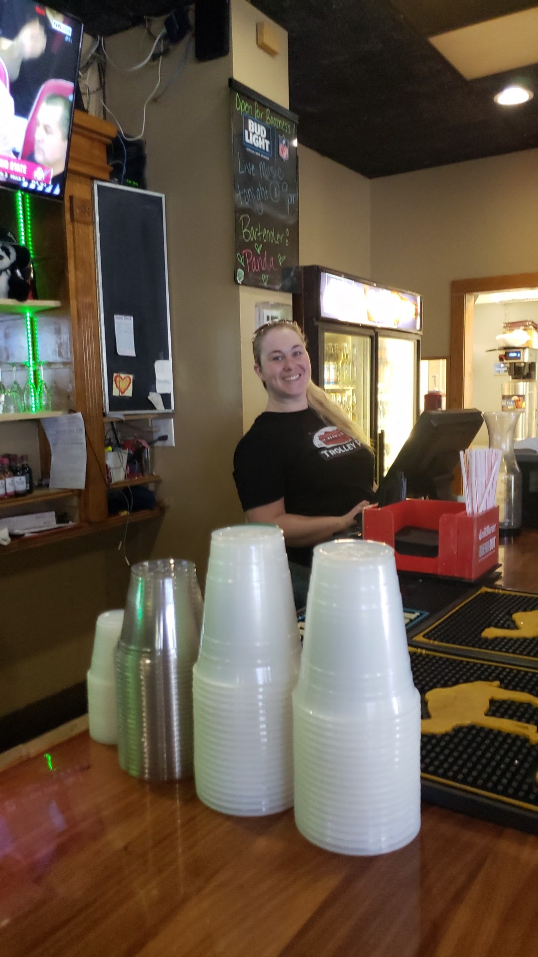 My boyfriend, best friend and I visited the pub for our first time yesterday. My boyfriend and I are newish to the Summerville area and haven’t found anywhere with such a laid back atmosphere and friendly staff. We were instantly greeted by Heather who was absolutely delightful throughout our entire visit. She was so friendly and gave us “the rundown” of weekly specials and events. She even put us onto a couple new things- and we could not have been more pleased. The food was amazing!- my boyfriend saw their add for a cheesesteak on Friday and was so sad he missed it, but the cooks were happy to make him and my bestie one anyway- and they were DELICIOUS. I had the BEST wings with Spicy Bourbon sauce, which I wasn’t sure about at first, but Heather recommended I try- and they were outstanding! While just hanging out with Heather for a bit, we were able to meet on of the cooks, Chris, who we obviously had to thank for our delicious meals- he was also so friendly. Everyone we came in contact with at this place were just so friendly- it made it such an enjoyable experience. I recommend everyone try Trolly Pub if they ever have the opportunity- you will NOT be disappointed!