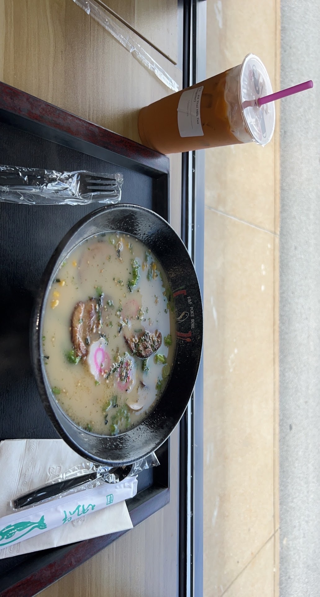 Pictures are worth a thousand words, do I even need to type this review? While en route to F&F for the first time ever, I was contemplating what the two letters could possibly stand for. It is clear to me now that these stand for Freaking and Fantastic! I arrived to the restaurant just around noon and was pleasantly greeted by the warm and welcoming staff. I ordered a Thai tea with no boba and a Chashu style pork broth and traditional noodle ramen. The Thai tea was delivered in a very timely manner, despite an influx of other customers, and was delicious. The spice mixture, flavors, and consistency were all exactly what I hope for in a marvelous Thai tea. Then the star of the show was delivered in a very stylish and beautiful ramen bowl. The smell of the ramen instantly makes oneâs mouth water, and the taste somehow still surprises with how decadent and flavorful one sip can be. As you can see, I enjoyed the entire bowl. The broth is savory and packed with the umami you yearn for in ramen. The fish cake delivered a scrumptious bite and the vegetables were vibrant and hearty with a perfectly cooked texture. The Chashu pork had the lovely maillard pop with a tender yet somehow crisp bite. The soft boiled egg had a jammy yolk that could never be reproduced by any 6 minute egg and a flavor to impress even Guy Fieri (who hates eggs). Overall first impression is an astounding 10/10 and you can expect me to be at F&F 10 out of the next 10...