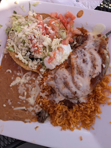 Refried beans. Bland. Mexican rice. Bland. Salsa just a tad spicer than tomato juice. Nice, hot tortilla chips in serious need of salt. Chimichangas looked like they were pressed between two fryer baskets like doughnuts. Tortillas limp and greasy. Beef filling: bland. Chicken fajitas dry, bland. Even the guacamole is off-putting. Peach sangria was tasty. So was the Modello Negra. Upsetting. I had such high hopes for a decent restaurant nearby. Service was pretty good. Nice looking place. The background music reminds me of Mexican Veggie Tales, though - a bit heavy...