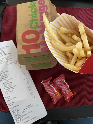 Yesterday around 430pm-5pm... I came in this mc ds because my friend who is extremely pregnant asked for mc Donald... I ordered two spicy chicken deluxe and a pounder with bacon and cheese... I also asked the kind young man for the chicken to be fresh... I had to wait at the register for over 6 min mind you while the manager or who ever she was, who seen me and ignored me till there was two other people behind me... well the young man apologized to me for the wait and said of course I can have it fresh.. I heard both the cook and the manager confirm that I asked for fresh... this whole time the who ever she was, was too busy flirting with the cook and talking so loud she acted like she didn't care about anything in the world... so I went to my car to drop off my drink and wallet so I can carry everything thinking it would be 5-10 min or so for the fresh chicken only to be told by another customer not even 2 min after ordering that they called my name... I was doubtful that it was fresh but figured maybe they just made some before I got there... tried a fry because they are always cold and no salt.. fries were room temp but also no salt so went inside and asked the manager for some salt just to walk out the door with her saying smack about the coupon girl... me... I'm the coupon girl I can't afford 30 bucks worth of mc.ds just to get cold stuff and three things never made right..and of course I live 2 min from there got home chicken was old and dry burger was old and dry. We all know they fries are never fresh here... how is this place still open... where is the higher ups I'm sure if they showed up more things wouldn't be like this... anyways waste of money.. friend got sick had to go to er to make sure everything was good... going to have to report this.. shame on you. I wounder how many people this new manager has killed because of neglect... please go anywhere else but here. Friend is...