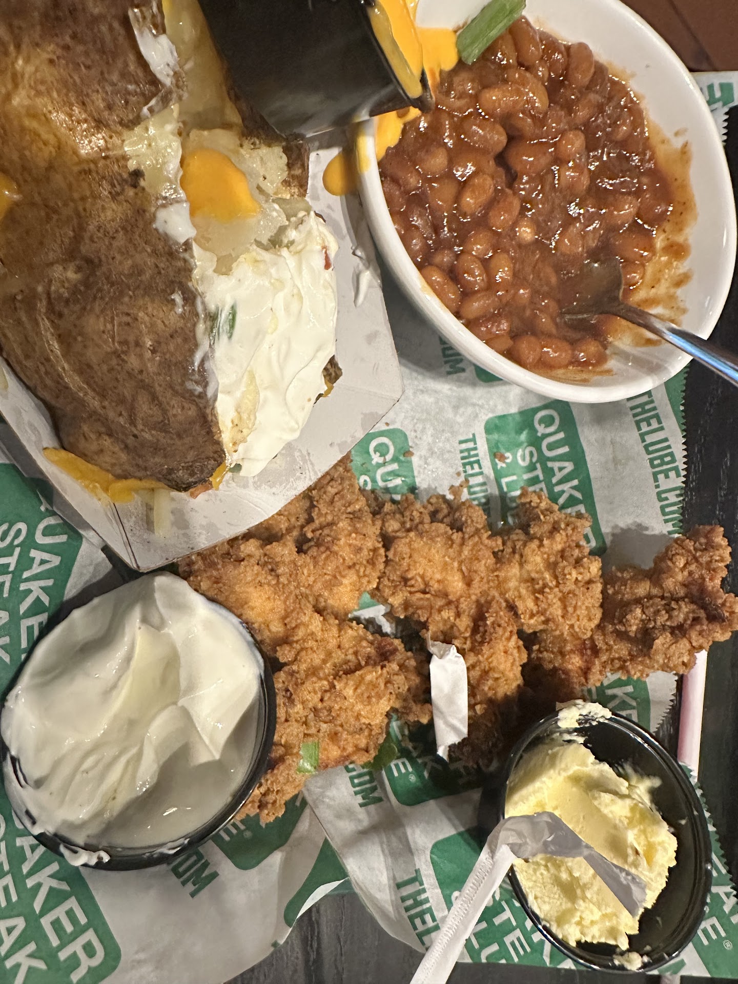 Cheese Burger — took it to go!! After the large table salad, boom boom shrimp and four (4) cocktails I was filled for the moment. However, I ended up eating the burger after I checked into my room. Wow!!! It was so delicious!! The bartender even packed me napkins, plastic ware and condiments including a few pieces of licorice 😮- that was really thoughtful and kind. So, definitely try their burgers — it will hit the spot after traveling all day, and if you like burgers. It was charbroiled to medium-well perfection